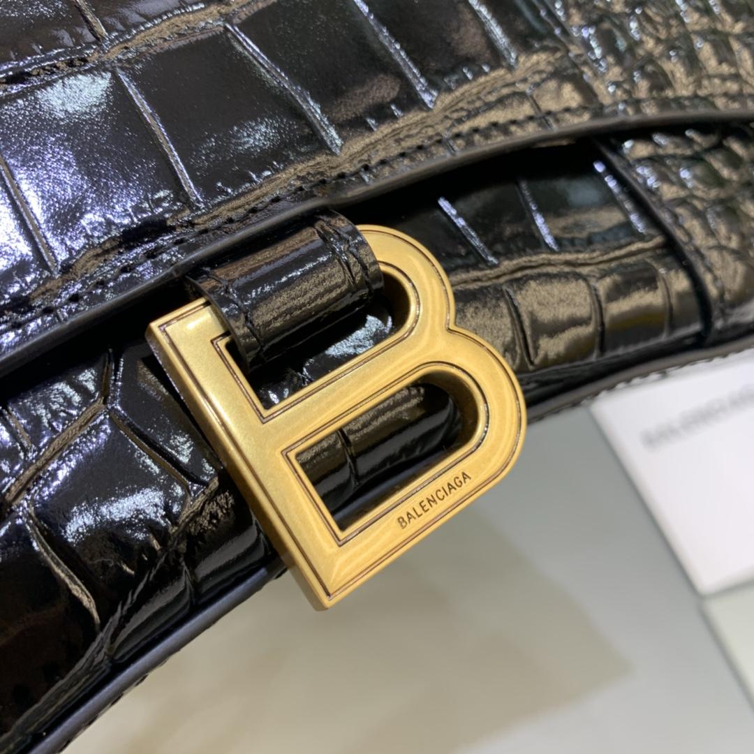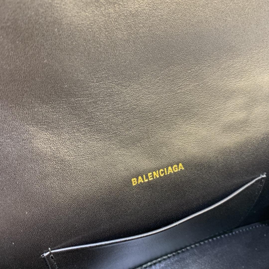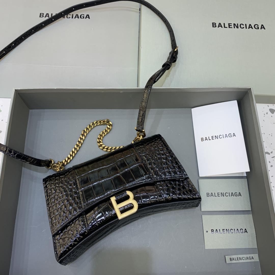 Семья Balenciaga выпустила сумку-мессенджер с цепочкой в виде песочных часов, которая выглядит как полумесяц с металлическим кольцом в форме буквы B.