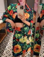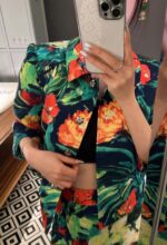 Новинка весны/лета 2024. Костюм из жаккардовой ткани. Жакет украшен бисером и прошит вручную. Подкладка с леопардовым принтом.