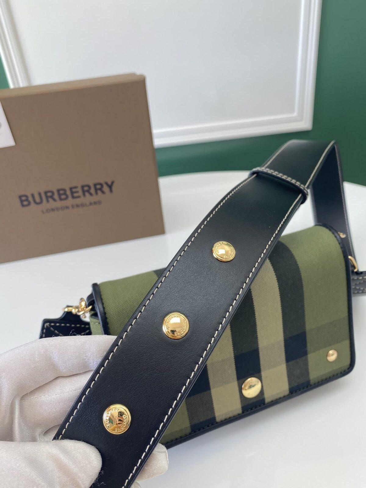 Новейшая и изысканная сумка через плечо семейства Burberry, изготовленная из отборной жаккардовой ткани в камвольную клетку, украшенная изысканными тремя заклепками.