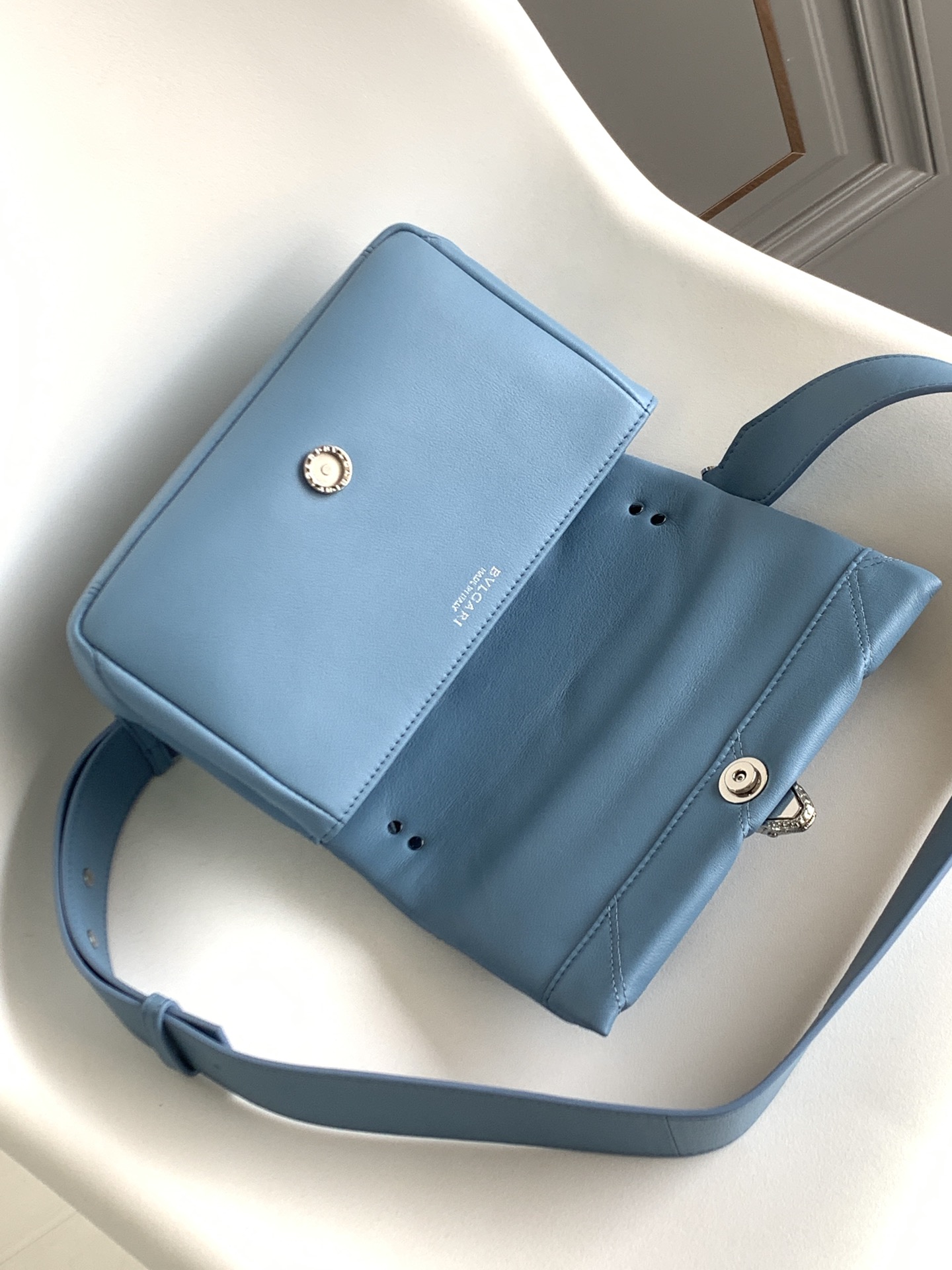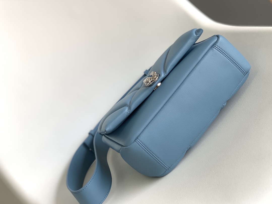 SERPENTI CABOCHON – это уникальный дизайн, изысканный и функциональный, современный стиль, который сияет в мире Serpenti. Мягкий и гладкий корпус этой сумки из телячьей кожи цвета сапфирового синего ниагарского сапфира. Позолоченная латунная застежка SERPENTI со змеиной головкой, вдохновленная винтажными наручными часами Bvlgari. Змеиная чешуя из нежно-голубого оникса в центре. Новаторский штрих – красные эмалированные глаза. Классическая цепочка BVLGARI, украшающая как ожерелье. Сумка оснащена регулируемым и съемным кожаным плечевым ремнем. Можно использовать как сумочку или клатч для универсальности, как днем, так и вечером. Одно отделение-органайзер, один внутренний карман на молнии и один внутренний открытый карман. Размер: 22,5 X 15 X 10 см.