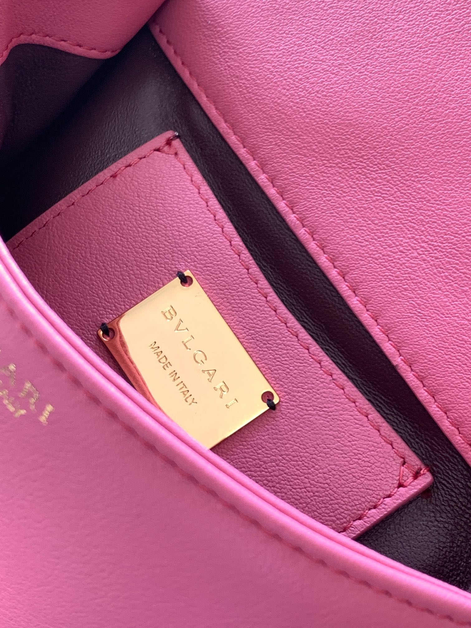 Змеиная чешуя с крошечным розовым перламутром в центре. Новаторский штрих – красные эмалированные глаза. Классическая цепочка BVLGARI, украшающая крышку как ожерелье. Может использоваться как красивая ручка для переноски, отражая дизайнерскую сущность ювелирного бренда. Сумка снабжена регулируемым и съемным кожаным плечевым ремнем. Можно использовать как сумочку или клатч для универсальности, как днем, так и вечером. Сверхмалый размер с одним органайзером и одним слотом для карт. Размер: 18 X 12 X 8 см.
