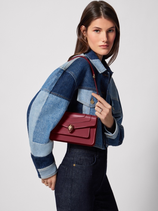 Маленькая сумка через плечо из коллекции EAST-WEST. Из лакрично-гранатовой глубокой бордовой глянцевой матовой кожи теленка. Чувственные глаза из черного оникса бордового цвета с золотой эмалью. Классическая магнитная застежка в виде головы змеи – гламурный штрих. С регулируемым съемным кожаным плечевым ремнем. Одно отделение, 1 передний карман, 1 задний накладной карман, 1 внутренний карман со стеганой строчкой, 3 слота для карт, 1 персонализированное туалетное зеркало, металлический логотип на задней стенке. Сохраняет практичный размер и классические элементы. Компактность и вместительность. Несколько вариантов переноски для повседневного использования. Поставляется в обновленной подарочной коробке. Размер: 22*15*4,5 см.
