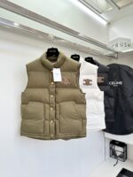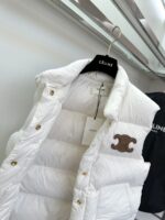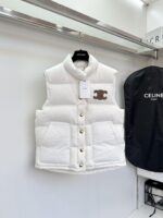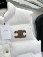 Пуховой жилет с логотипом Celine Arc de Triomphe, просто остановитесь и взгляните на этот жилет, вы в него влюбитесь. Очень чистый и аккуратный пошив привлекает внимание. У него небольшой воротник-стойка и очень повседневный прямой стиль. Его можно носить со свитерами или толстовками. Он абсолютно идеален. Разумный выбор.