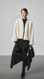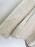Выполнено из меха мериноса, короткий фасон шубки. Мех мягкий и восковой. Толстый мех мериноса обладает отличным теплоизоляционным эффектом. Окрас: белый, чёрный, темно-бежевый.