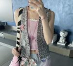 CC24C, с бисером джинсовая жилетка, тканые буквы жаккард джинсовой ткани.