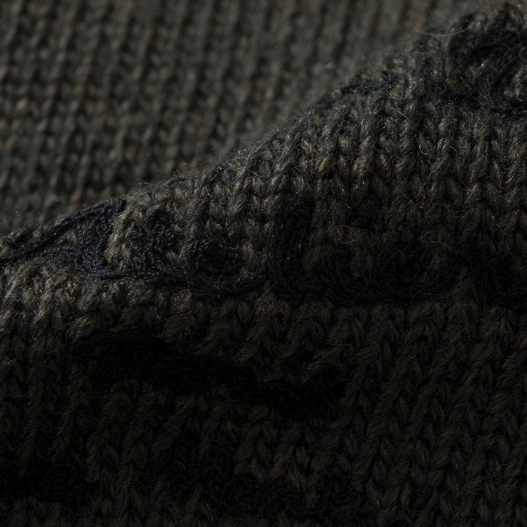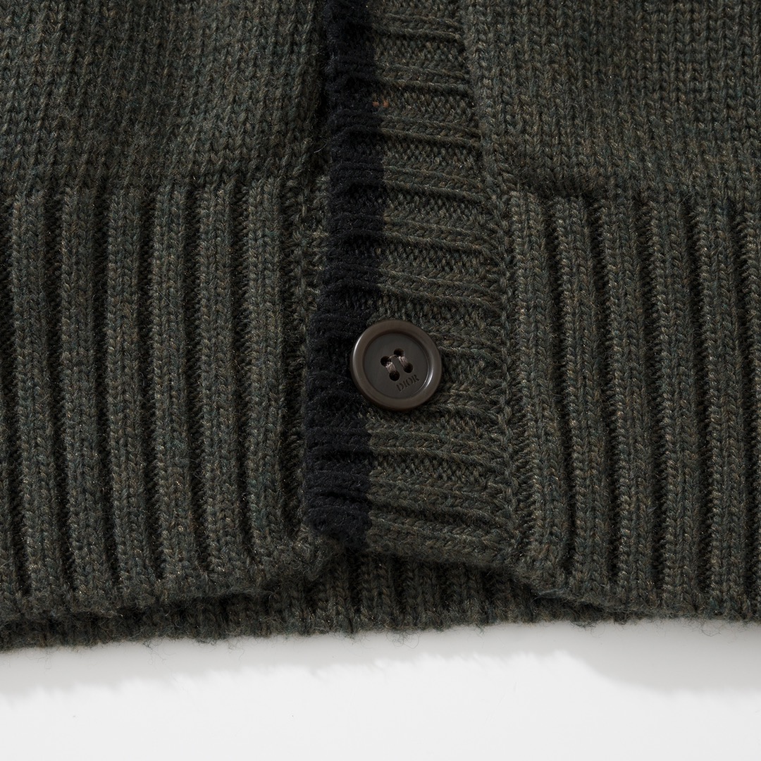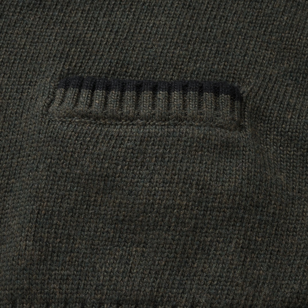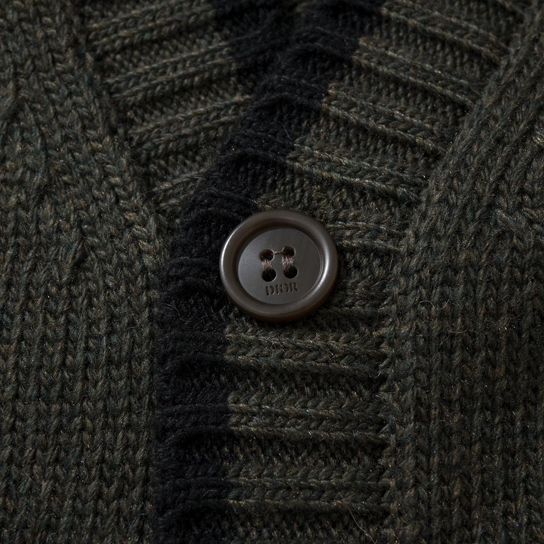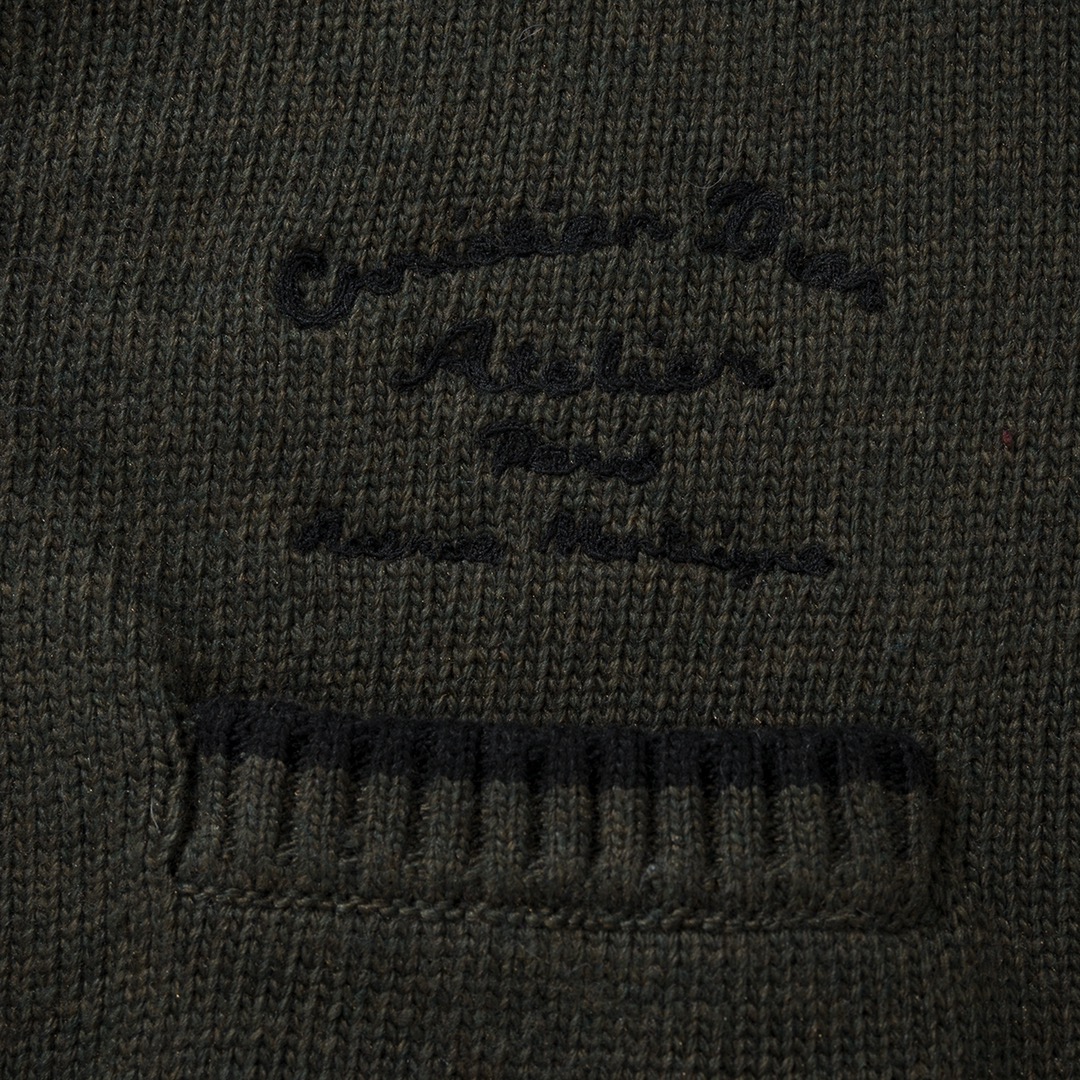 Темно-зеленый кардиган. Очень необычные цвета. Черный, зеленый, желтый, белый – четыре цвета прядут в цветочную пряжу. Цвета практически неотличимы друг от друга благодаря сотрудничеству с крупной прядильной фабрикой, полностью шерстяной материал пушистый на ощупь, а нить для вышивания также является камвольной с фиксированным крашением. Шерсть, цепная вышивка, полный набор аксессуаров, этикетка с крупным лейблом, пуговицы на заказ из рога.