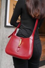 Jackie сумочка 1961. Эта сумка изготовлена ​​из красной кожи и возвращает классические сумки Jackie 1961 года на передний план моды. Оснащенная дополнительным съемным плечевым ремнем, она привносит современный стиль в дизайн, позволяя носить его в различных вариантах, например, в руке, на плече или через плечо. Размер: 27,5*19*4 см. Номер модели: 636709.