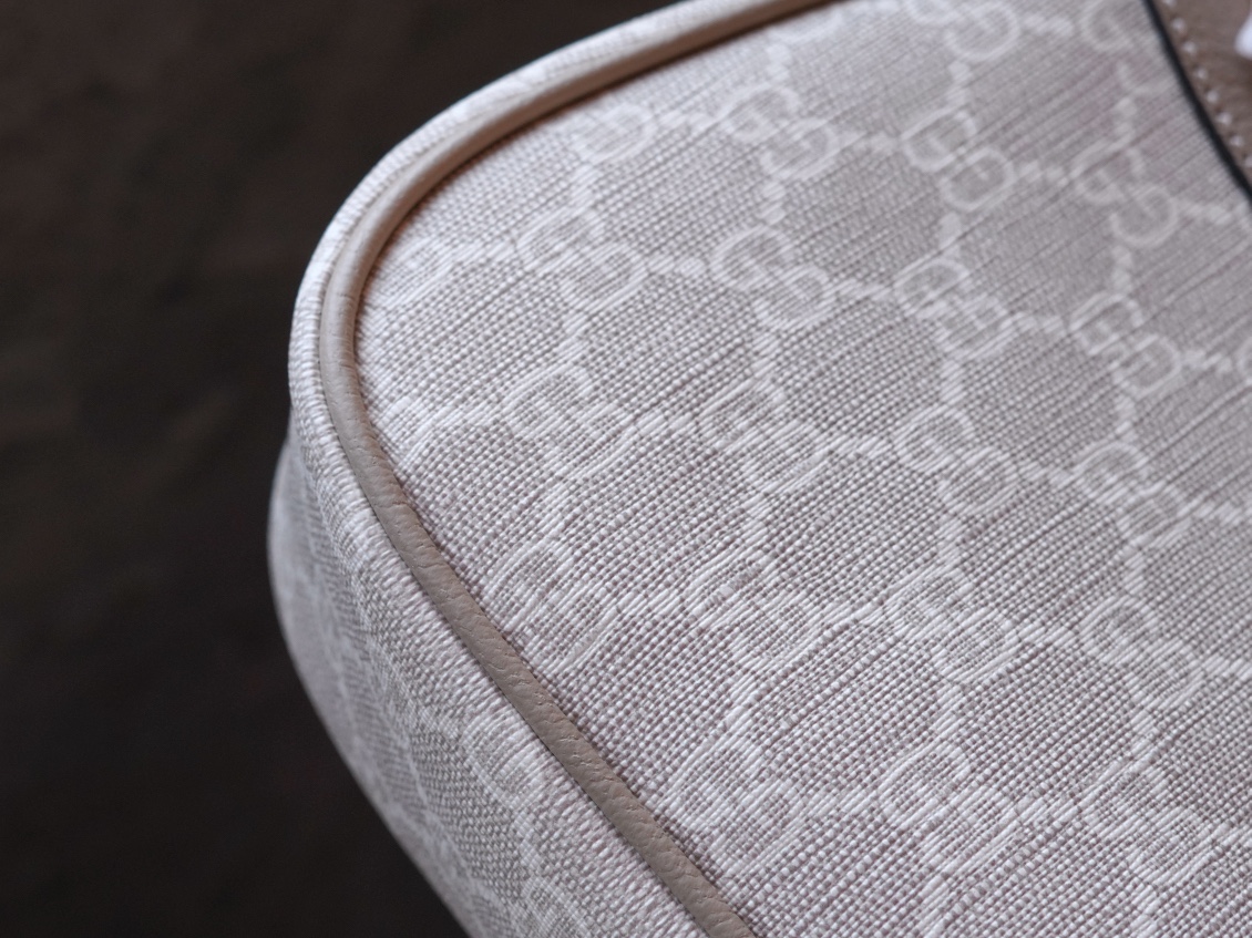 Бежево-белая канва GG Supreme. Овсяная кожаная отделка. Регулируемая верхняя ручка.