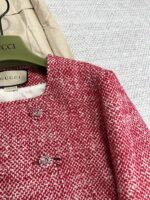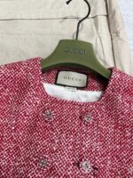 Красный твидовый укороченный блейзер GG. Цвет идеально подходит для Нового года. Новая коллекция твидовых блейзеров создает великолепный красочный образ. Этот строгий пиджак изготовлен из красно-белой твидовой ткани. Застежка в виде двойной буквы G с соответствующими пуговицами придает силуэту шик.
