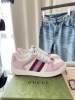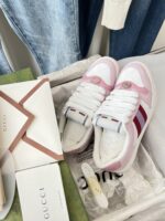 Малиново-розовый. Материал и мастерство: оригинальная кожаная ткань + холст GG/винтажная двухцветная тесьма. Подкладка из натуральной кожи, металлическая двойная G овальная эмаль, украшение стразами, украшены фирменной винтажной биркой с логотипом. Индивидуальная двухцветная резиновая подошва.