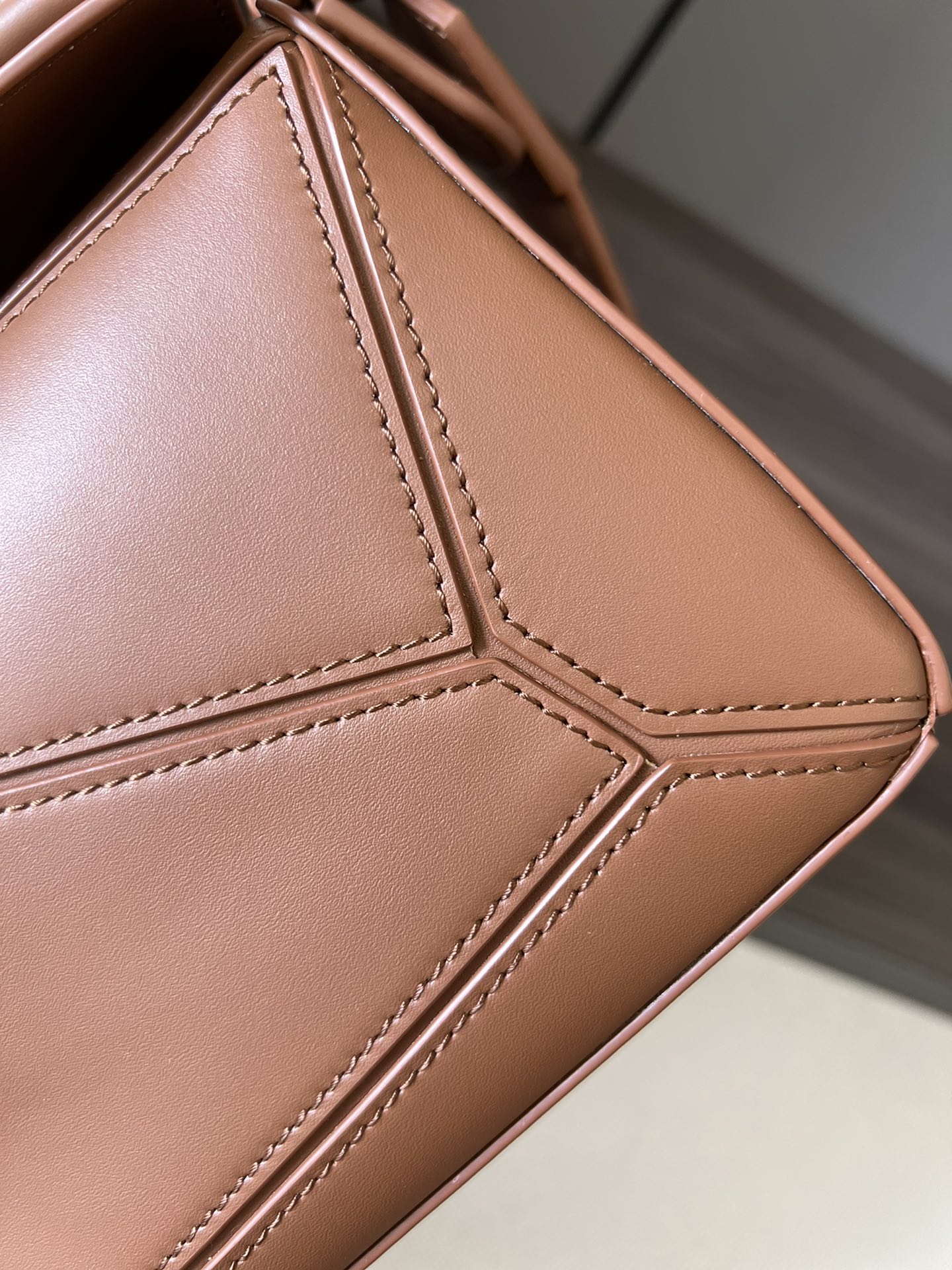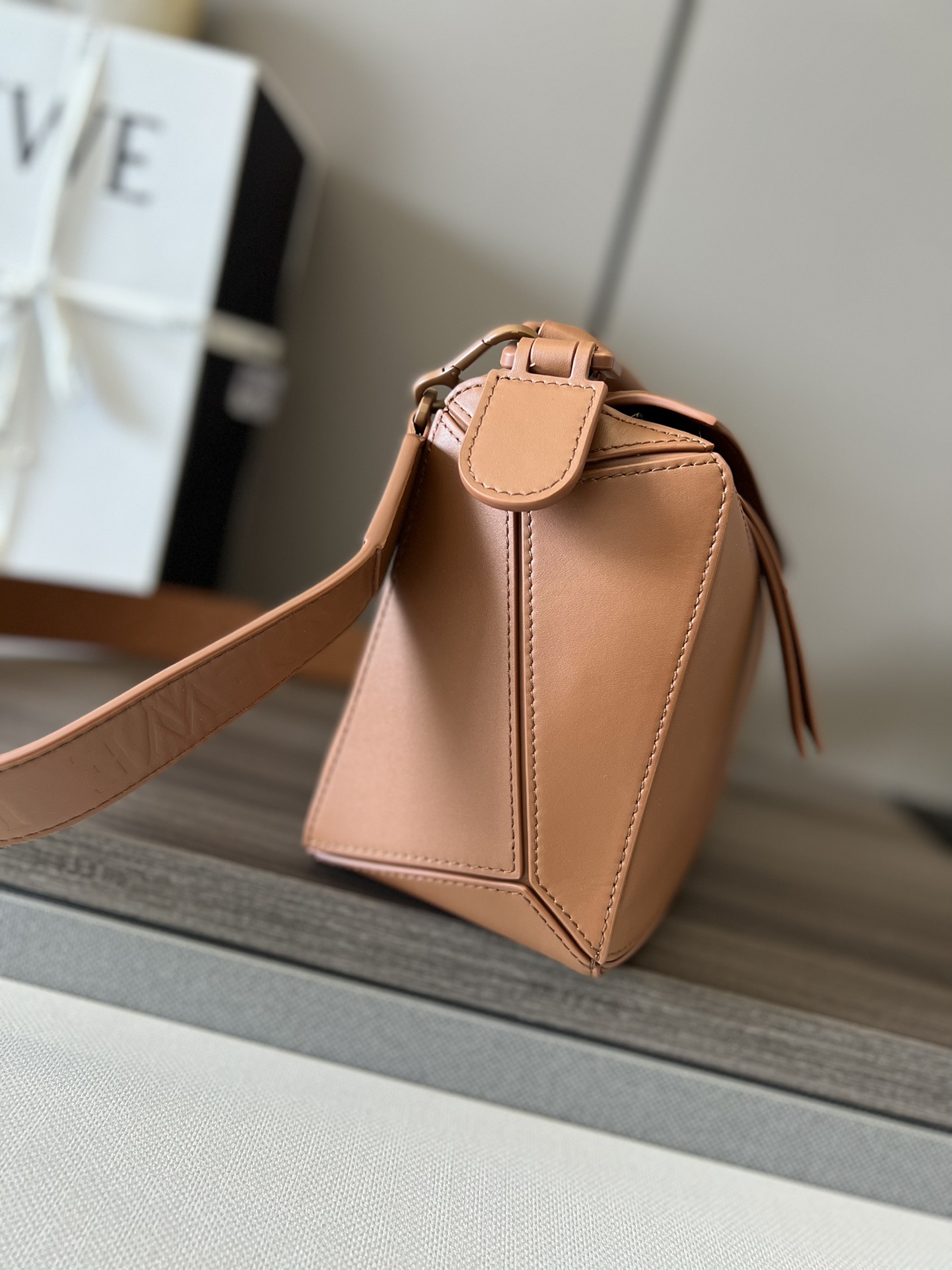Сумка Puzzle из атласной воловьей кожи New. Прямоугольные формы и точная техника раскроя создают характерные геометрические линии Puzzle. Изготовленная из атласной воловьей кожи с фурнитурой соответствующего цвета, эта уменьшенная версия оснащена съемным плечевым ремнем, украшенным тиснением LOEWE с одной стороны и анаграммой с другой. Ручка для переноски, через плечо, в руке или сверху. Съемный плечевой ремень. Застежка-молния из воловьей кожи. Внешний задний карман, один внутренний прорезной карман. Может быть изготовлен на заказ с плечевым ремнем и персональным брелоком. Подкладка из хлопкового холста в елочку того же цвета, что и тиснение.