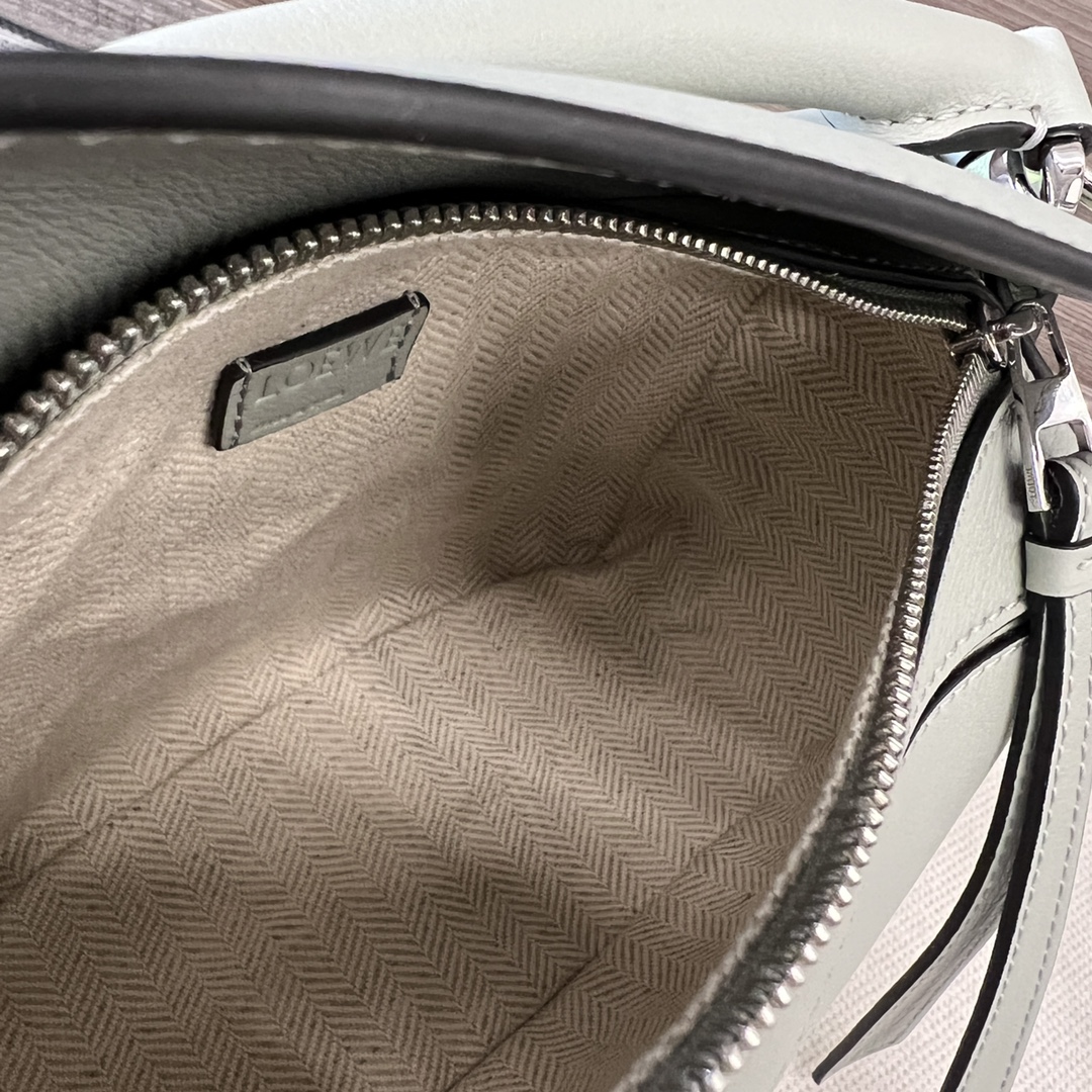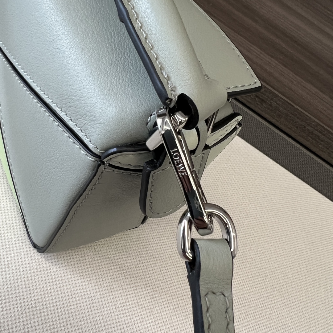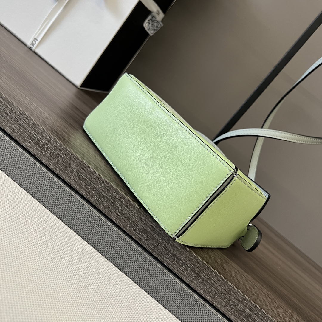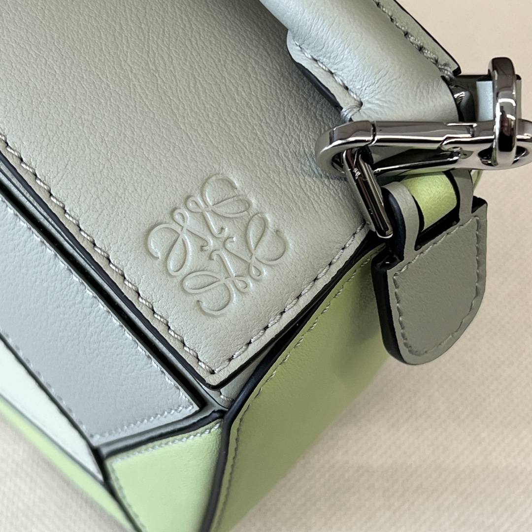 Дебютная сумочка от LOEWE. Прямоугольная форма и точная техника кроя создают характерные геометрические линии Puzzle. Эта мини-версия выполнена из контрастной воловьей кожи. В Mini Puzzle можно поместить, например, небольшой вертикальный кошелек, мобильные телефоны большинства размеров (до 6,1 дюйма) и футляр для солнцезащитных очков. Носить через плечо или кросс-боди. Плечевые ремни регулируются и снимаются. Один внутренний, один внутренний прорезной карман и один внешний задний карман на молнии. Застежка-молния из воловьей кожи. Подкладка из хлопкового холста в елочку. Тиснение в виде анаграммы.