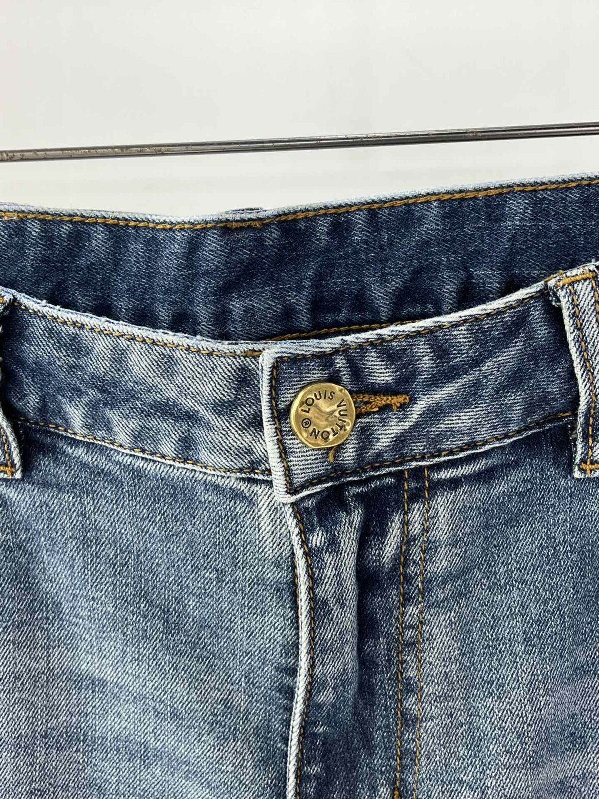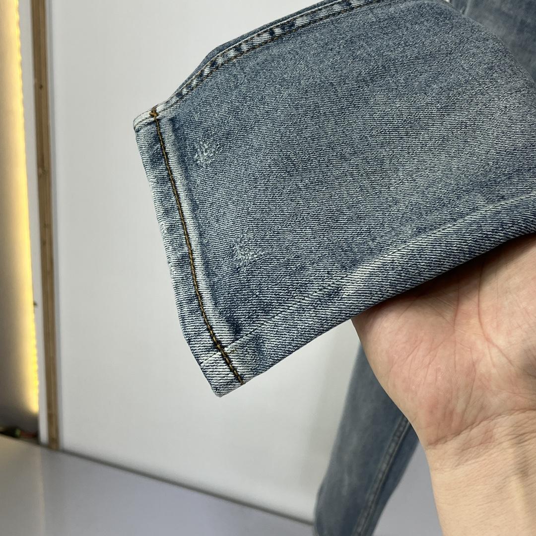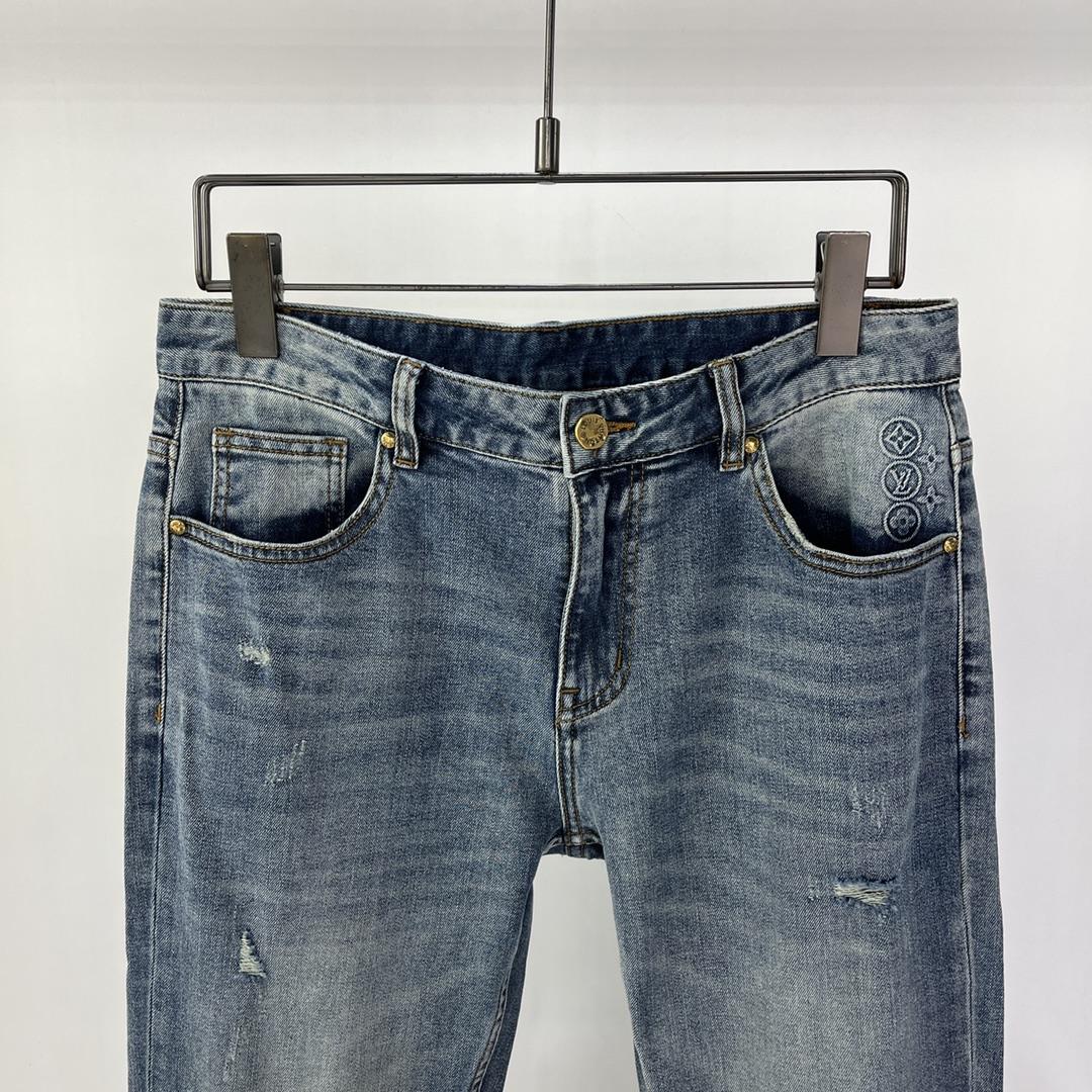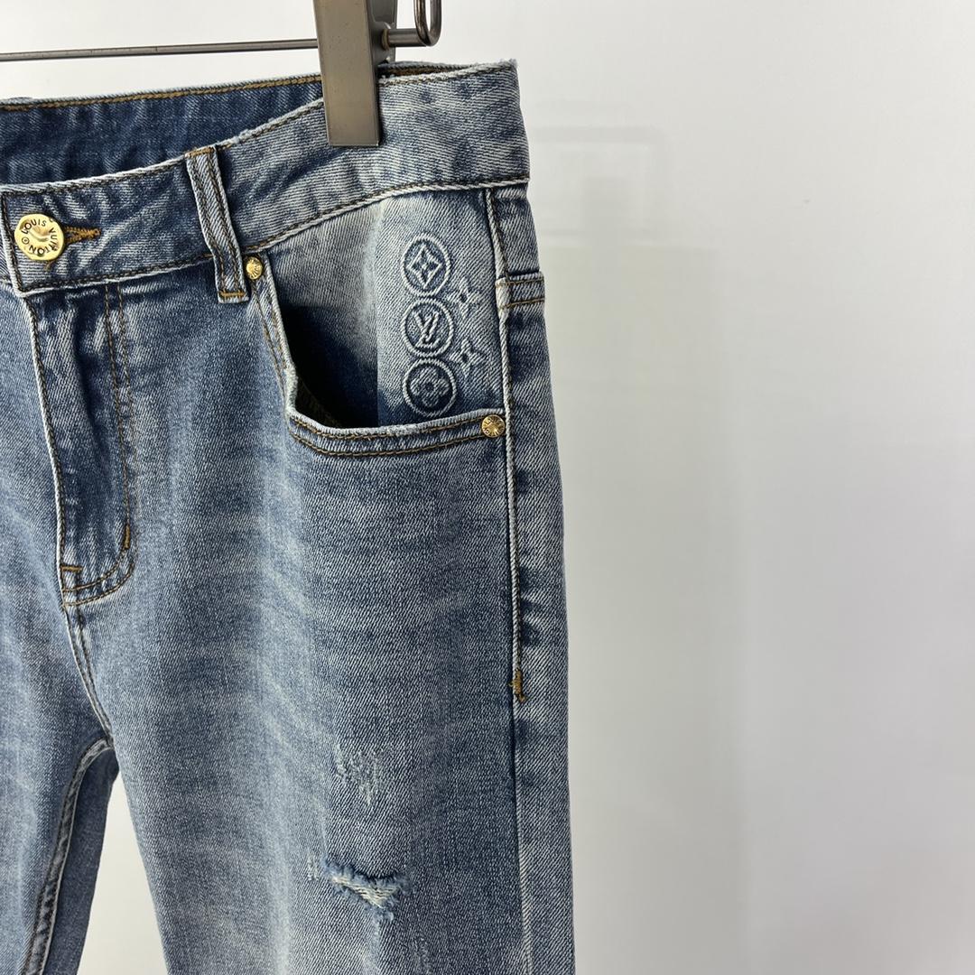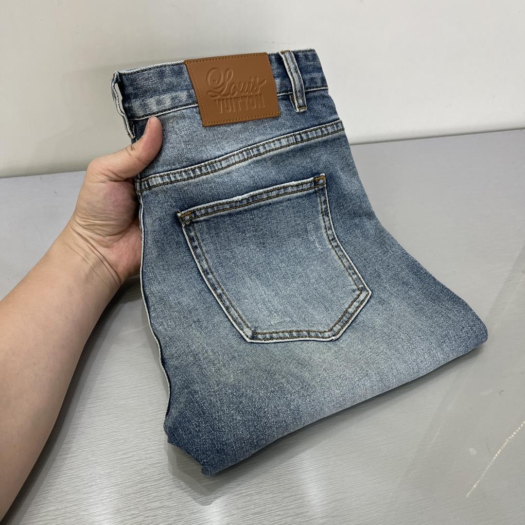 Джинсы Louis Vuitton. Индивидуальная эластичная джинсовая ткань, классическое оригинальное украшение из кожи, идеальная маленькая прямая версия.