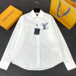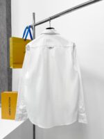 Сплошная белая рубашка с геометрическим логотипом. Ткань изготовлена из гребенного хлопка.