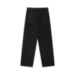 Новый сезон. Унисекс хлопковые рабочие брюки с прямыми штанинами. Ткань: тканая саржа, принт флокирования. Хлопковая саржа этих рабочих брюк придает нежную текстуру силуэту рабочей одежды с рисунком флокирования. Monogram на груди для комфортной повседневной носки. Простой силуэт можно сочетать с подходящей рубашкой для повседневного гардероба. Ткань саржа имеет четкий саржевый рисунок на лицевой стороне, одинарные нити используются. Ткань обладает отличной стабильностью, нелегко деформируется. Использование пуха из полиэфирного волокна, цвет высококачественного черного фиксированного крашения, общий эффект трехмерного ощущения, сильного, мягкого и нежного ощущения флокирования. Флокирование печати является специальным процессом печати, принцип заключается в том, что волокна штапеля, в соответствии с конкретным рисунком адгезии к поверхности ткани.