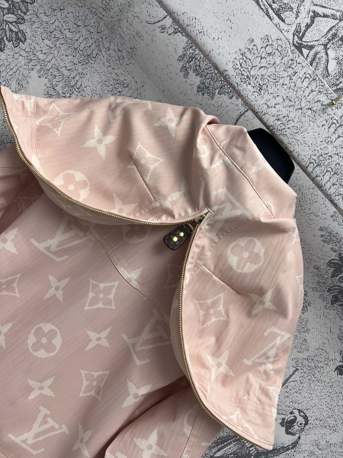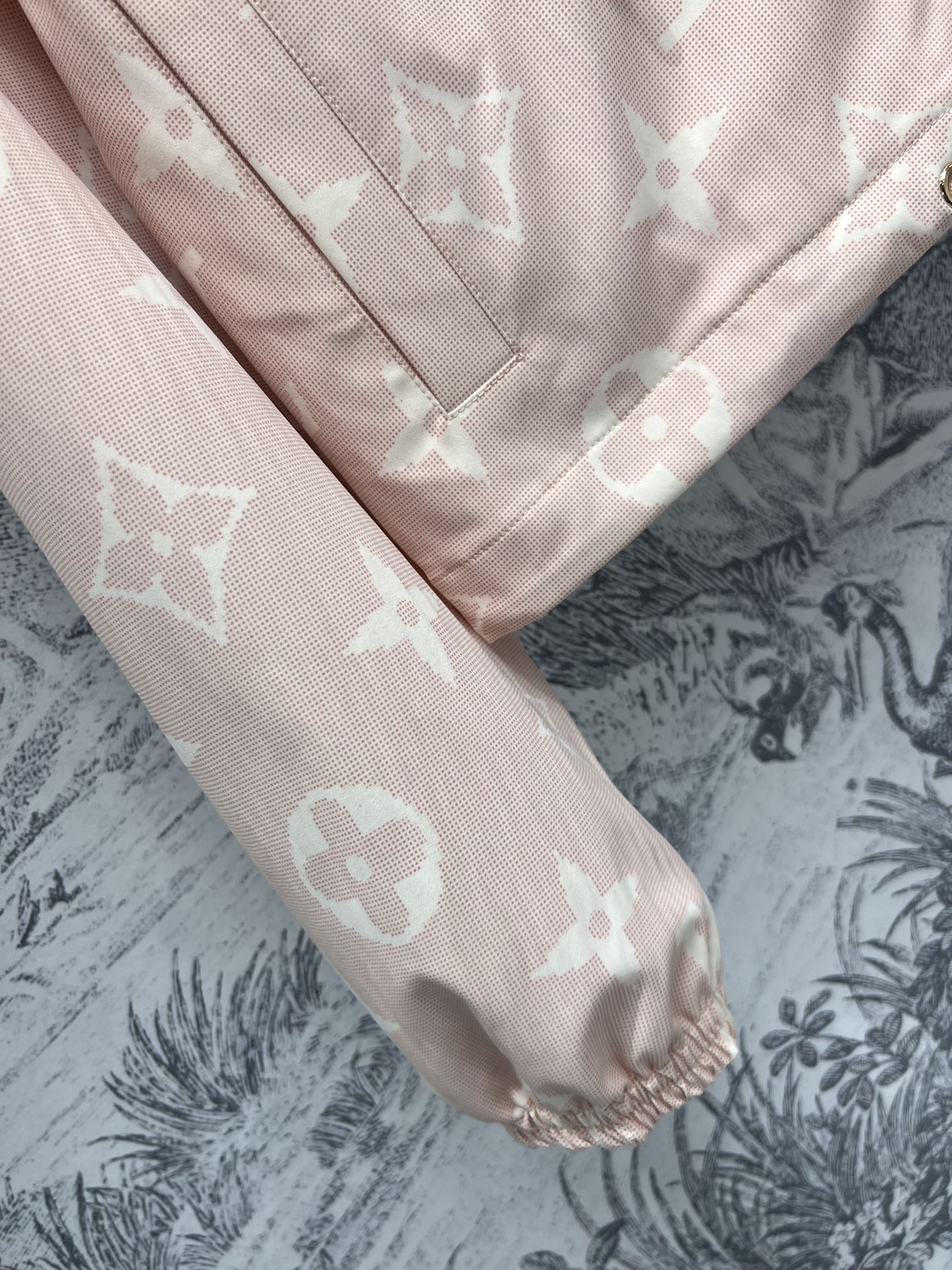 Sakura Pink Print Hooded Short Jacket – стильная и модная куртка с капюшоном, воротником-стойкой, который можно откинуть назад, чтобы выглядеть стройно и красиво. Розовый цвет цветущей сакуры очень светлый, а классический старомодный узор стильный и женственный. Индивидуальный цветной шнурок и кожаные вкладки, подкладка также цветная. 3 размера в одном цвете.