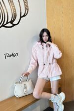 Sakura Pink Hooded Drawstring Jacket – стильная и модная куртка с капюшоном и регулируемым поясом. Верхний эффект особенно стройнит и хорошо выглядит. Цвет цветущей сакуры, розовый, очень светлый с классическим рисунком старого цветка, модный и женственный. Индивидуальный подбор цвета рисунка и кожаной части. Подкладка также имеет соответствующий цвет принта. Один цвет и три размера.