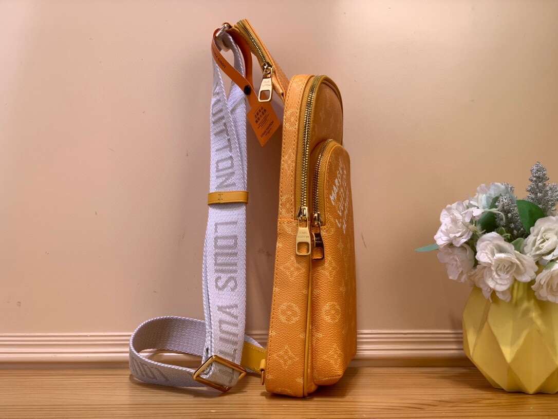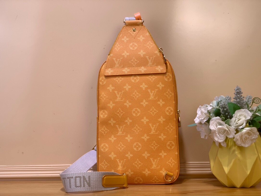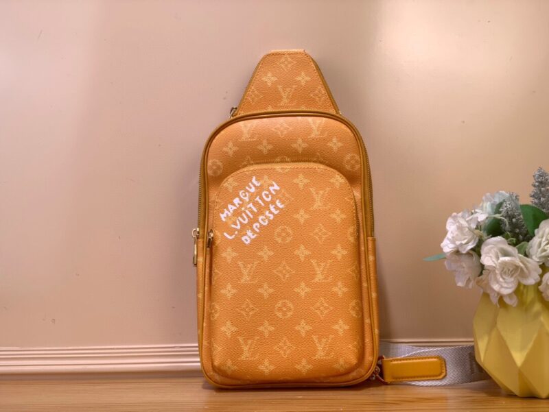 Альтернатива классическому рюкзаку – сумка Avenue Slingbag из холста Monogram с белой подписью “Louis Vuitton” на переднем кармане на молнии. Регулируемый плечевой ремень можно пристегнуть к D-кольцу на правой или левой стороне сумки. Небольшой треугольный карман на молнии в верхней части для хранения мелких предметов первой необходимости.