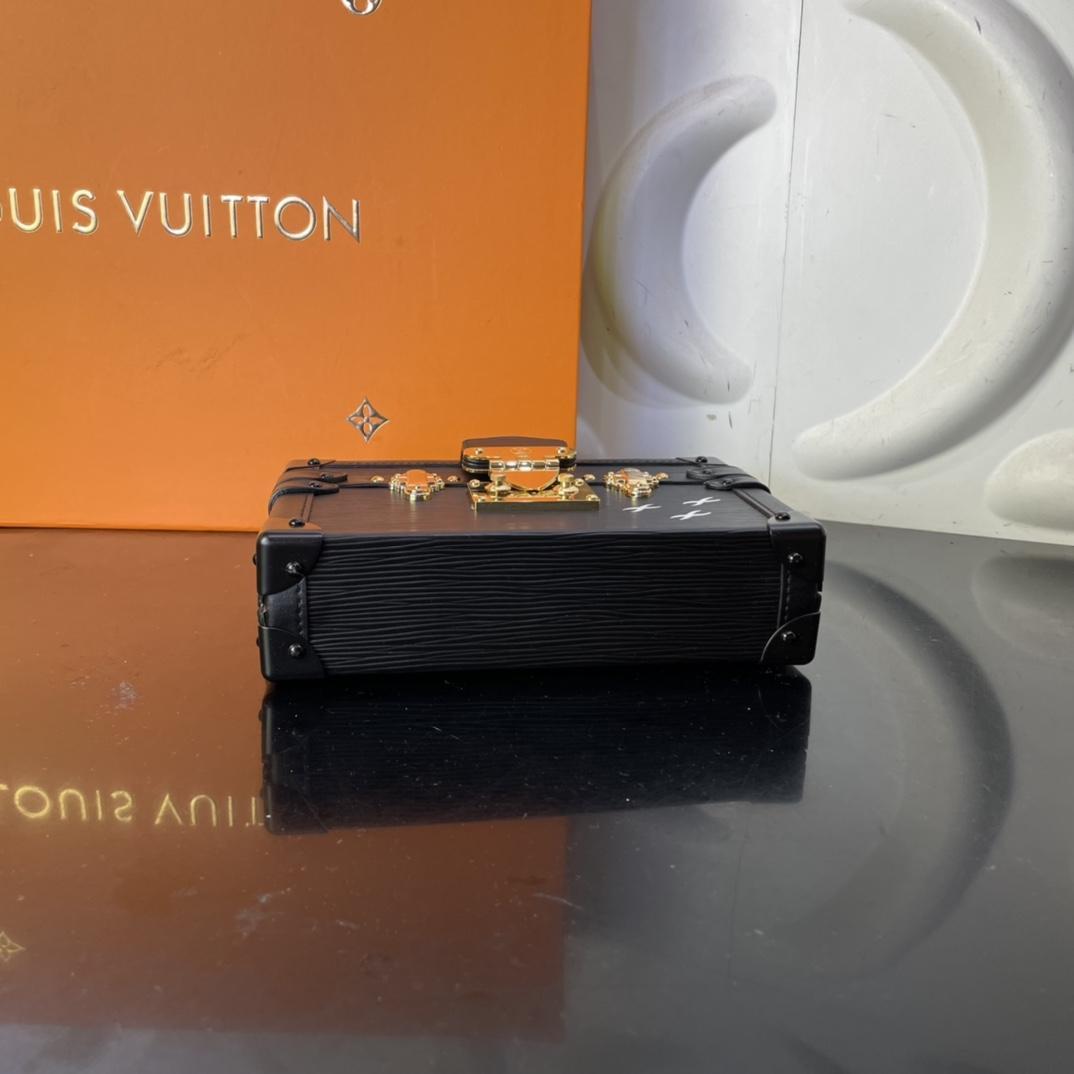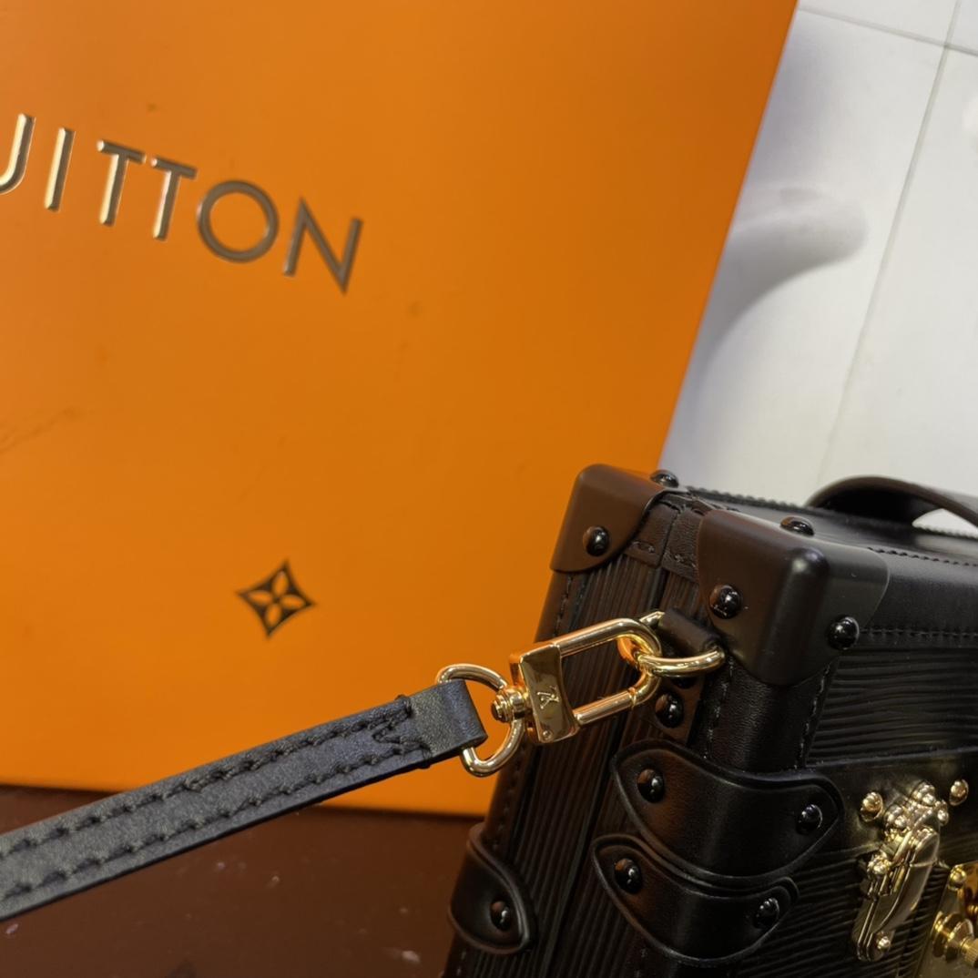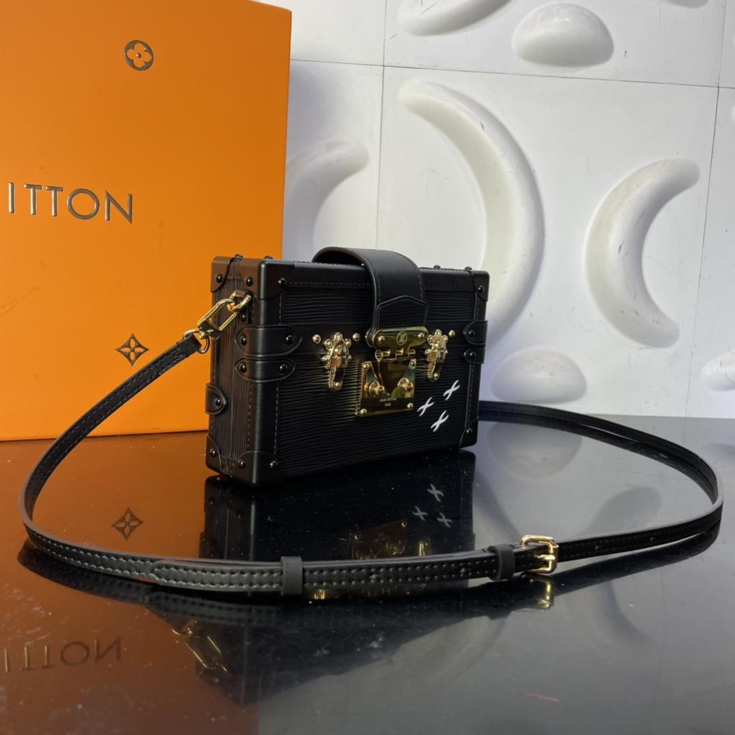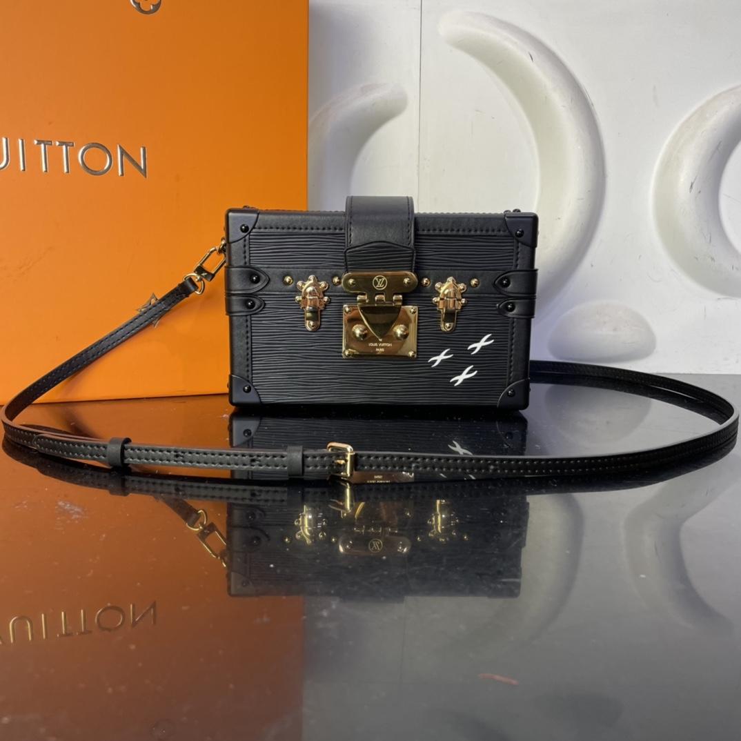 Эта сумка Petite Malle изготовлена из мягкой кожи Epi, вдохновленной чемоданом, созданным по индивидуальному заказу богатым банкиром Альбертом Каном в начале 20-го века, с тремя белыми крестами в качестве знаковых элементов.