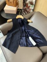 Жилет, внутренний логотип, полосатый шерстяной жилет темно-синий.
