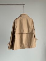 Ткань изготовлена из хлопка Wadatan, 65% хлопка и 35% полиэстера, с жесткой текстурой и слегка водонепроницаемая. Передняя планка с простым двойным рядом из четырех пуговиц, застежка на пуговицах, с накладными карманами и задним открытым дизайном, очень практично.