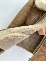 Зимний продукт Miu Miu 2023 года действительно взрывной. Весь мех сделан из меха Ньюсона. Мех густой и пухлый. Старый и потертый цветовой дизайн имеет ретро-тон. Цветовая гамма Майяра, которая очень популярна в этом году, действительно красива. Верхняя часть тела вытянет пропорции вашего тела и визуально удлинит ноги. Цвет: тертая карамель.