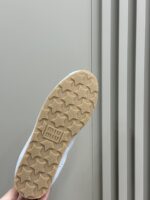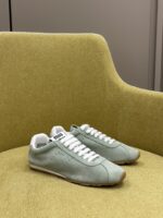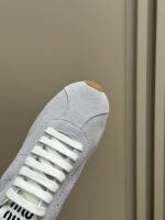 Кожаные кроссовки на тонкой подошве и квадратном носке. Кроссовки из потертой кожи с отверстиями для большей воздухопроницаемости. Форма обуви немного тоньше, а ступни выглядят более изящными; сдержанный и простой дизайн кроссовок обладает неограниченной универсальностью. Высшее качество.