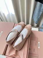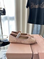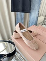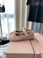 New Suede Ballet Flats|Original Purchase Replacement Grade, нюдово-розовый, белый. Материал и мастерство: оригинальная замшевая ткань, кожаная подкладка, вамп украшен бантом и вязаным логотипом, декоративная резинка, кожаная подошва, резиновый каблук. Размер: 35-40.