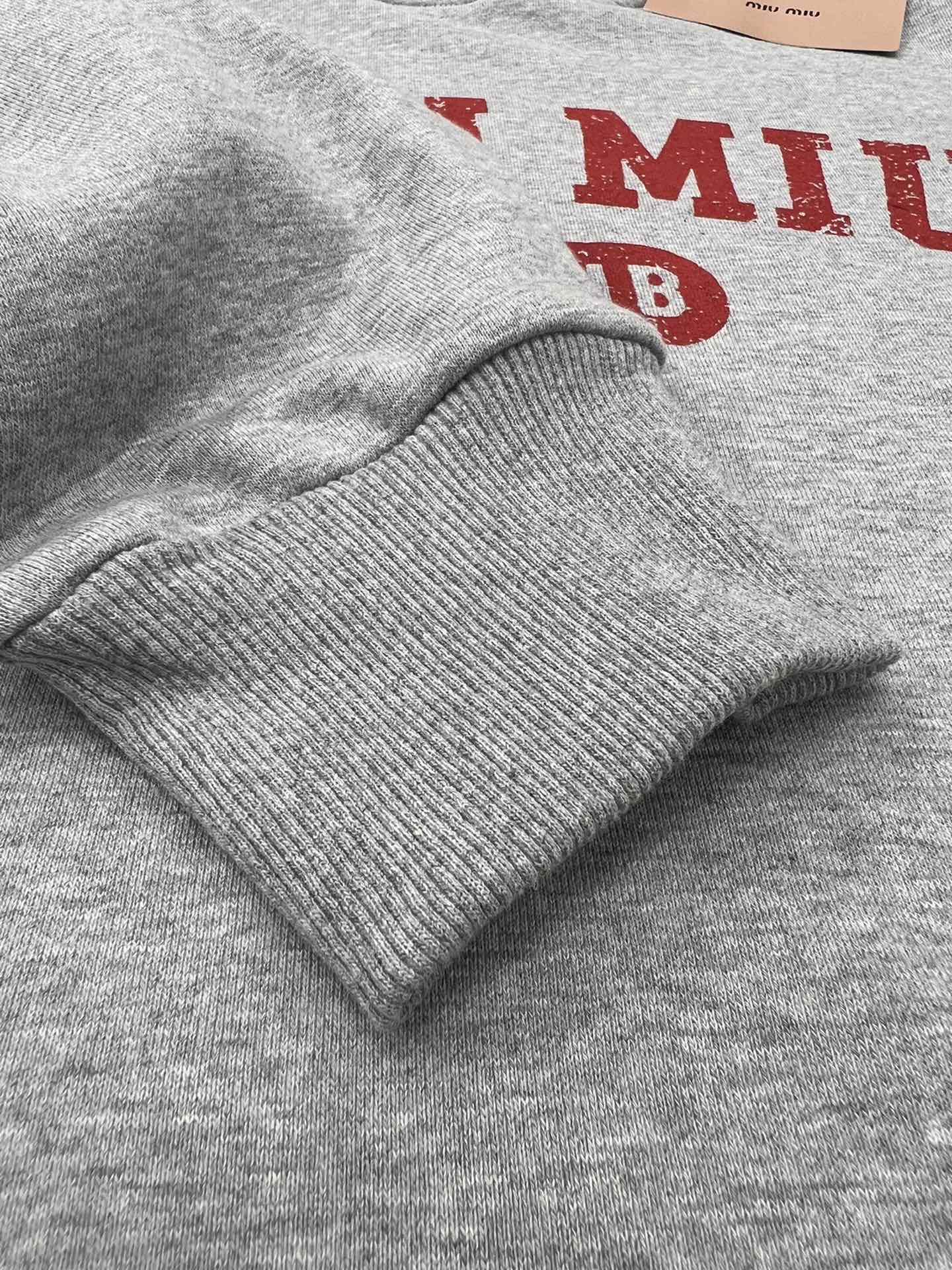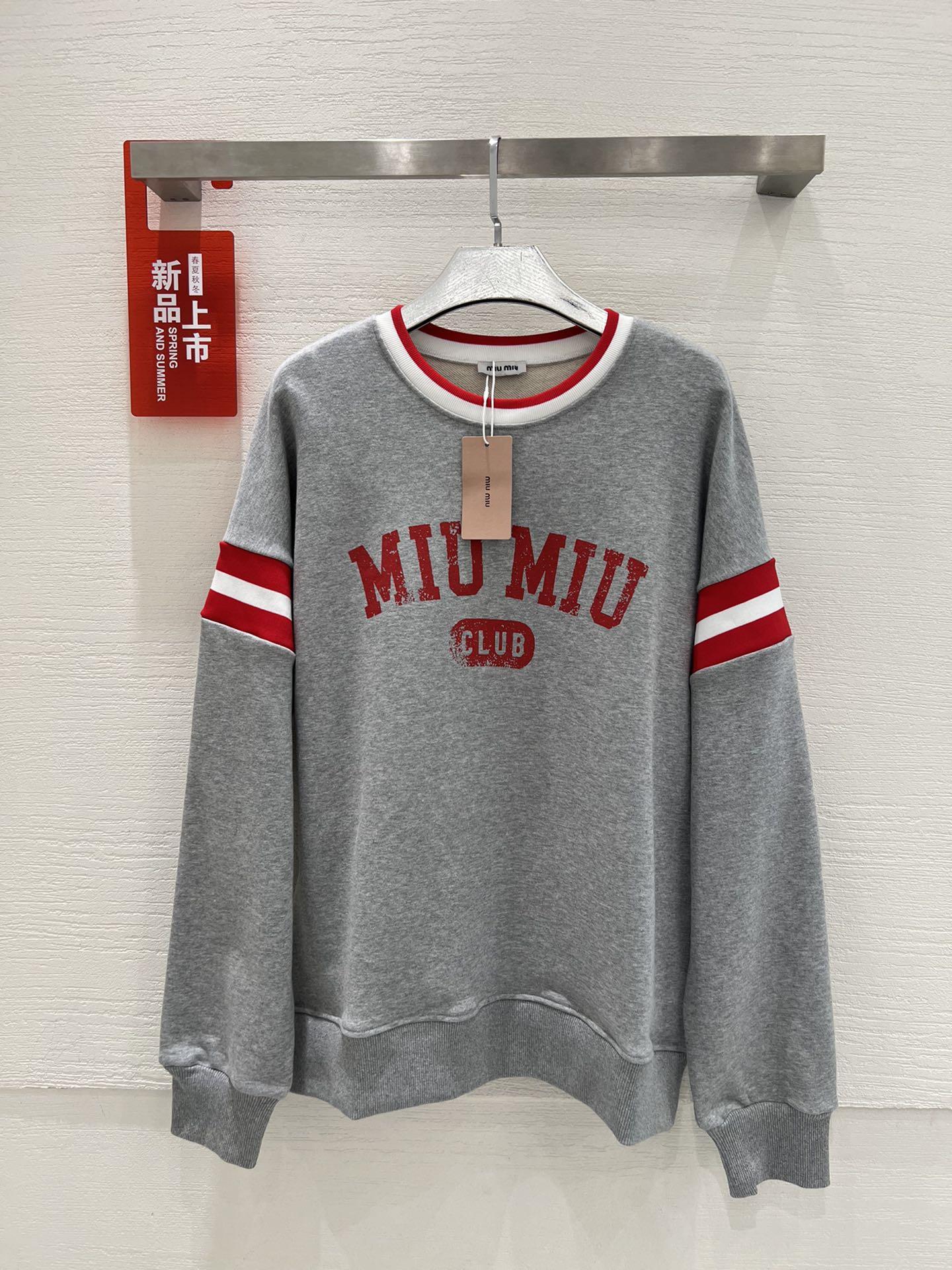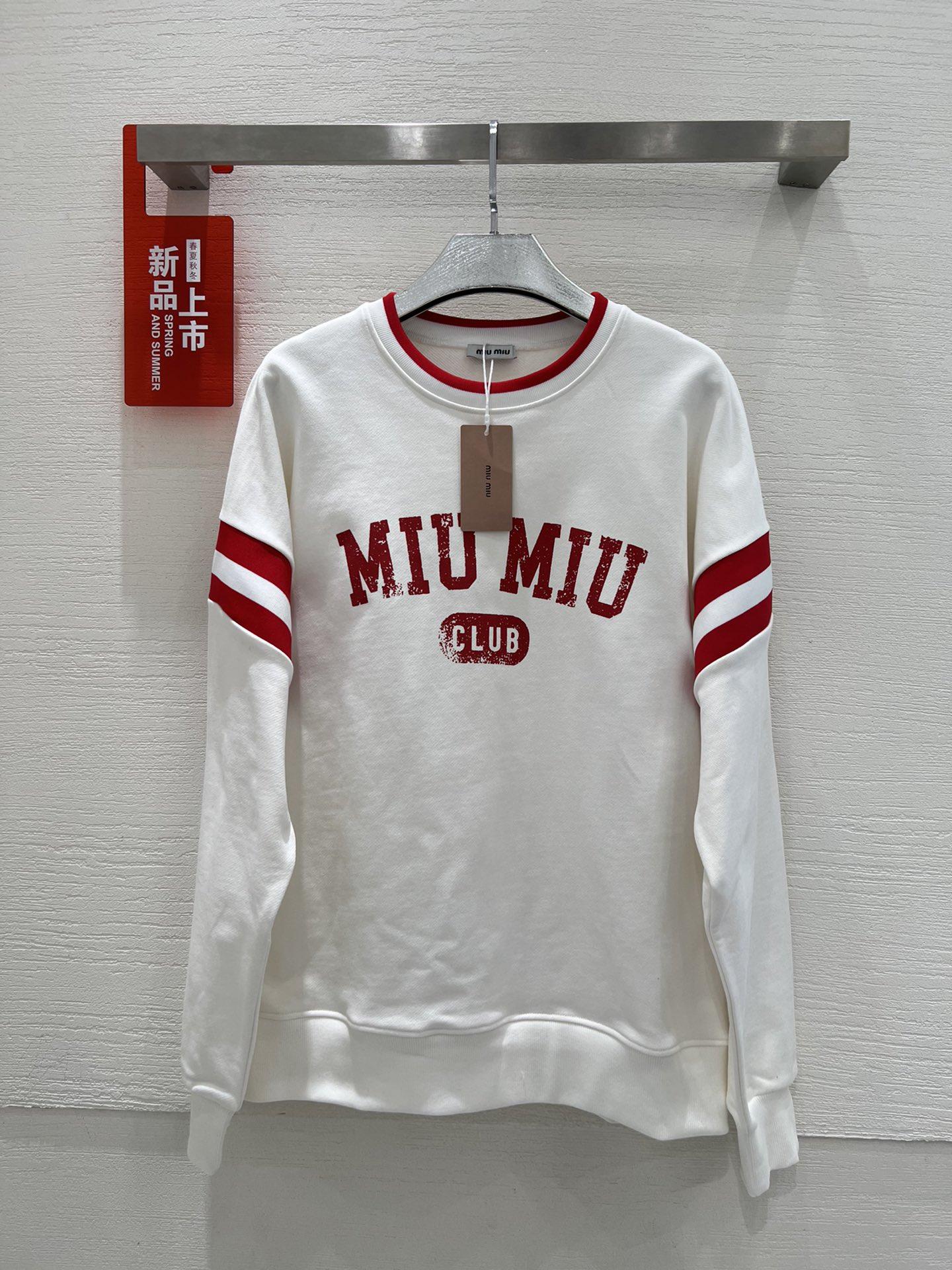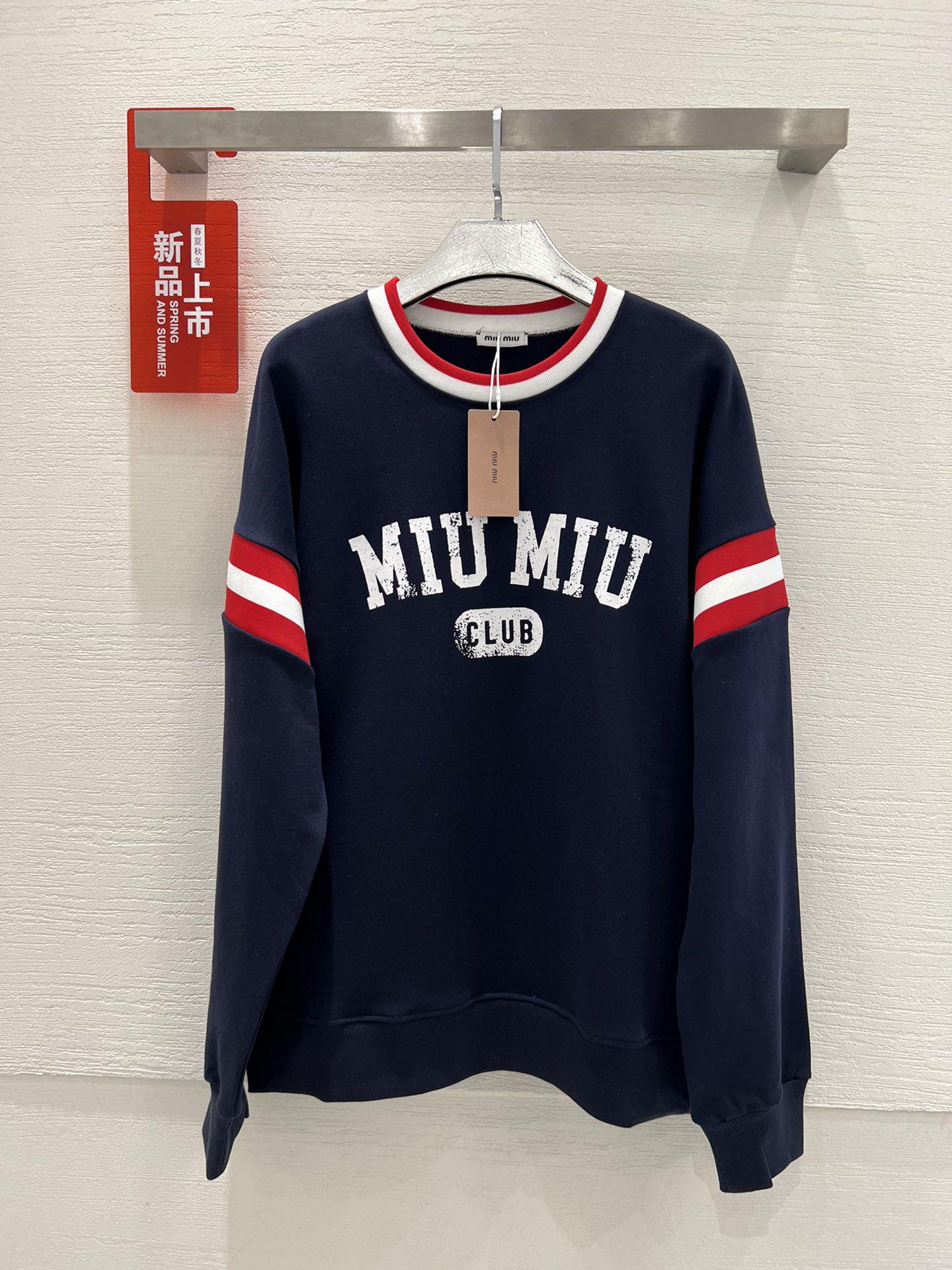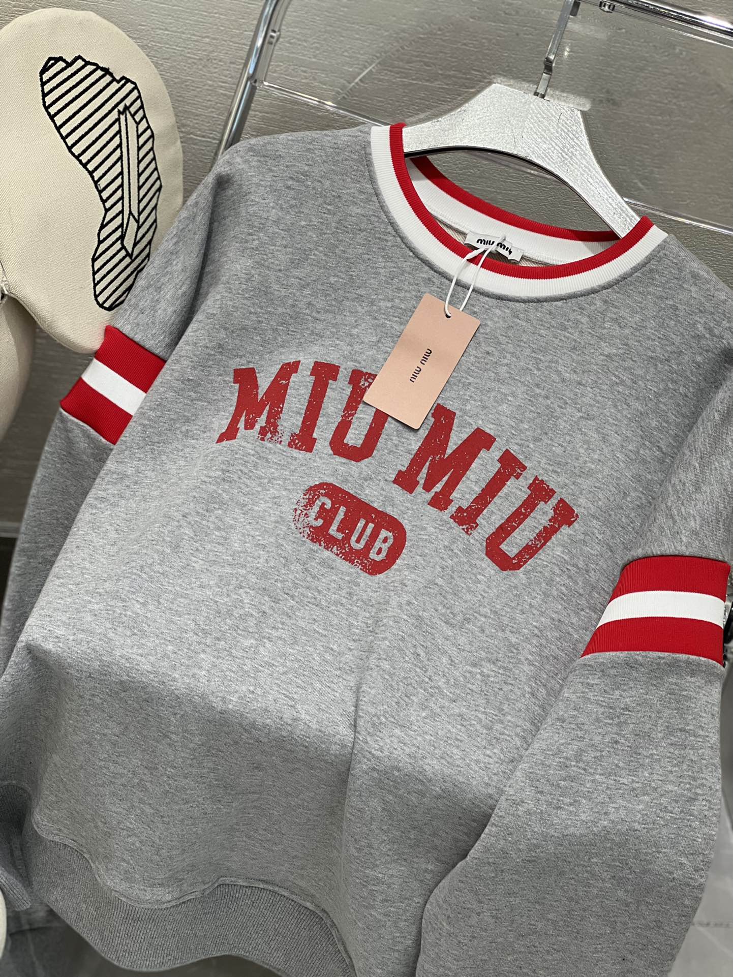 Miu Miu ранняя осень, новый стиль, свитшот с круглым вырезом, контрастный и цветным воротником и буквенным принтом, модный иностранный стиль, свободная версия, одинаковый стиль для мужчин и женщин.