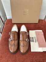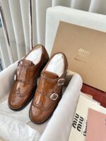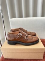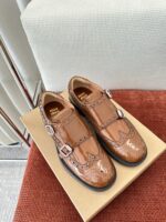 Материал: оригинальная коровья кожа, отделка верха броги, кожаная подкладка. Тисненый логотип на язычке. Полный ремешок с двойной пряжкой из броги с металлической пряжкой с выгравированным логотипом. 3 см резиновая подошва. Размер: 35-40.