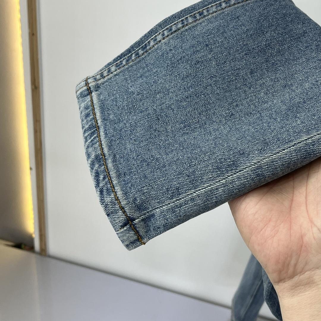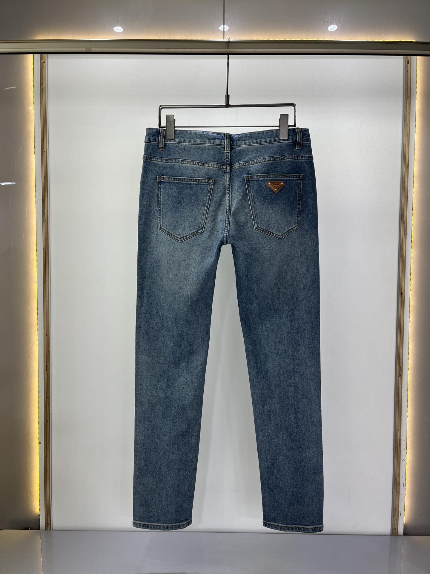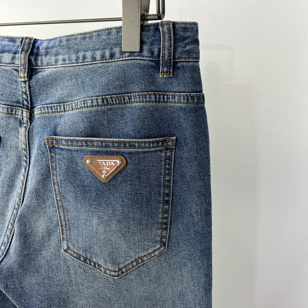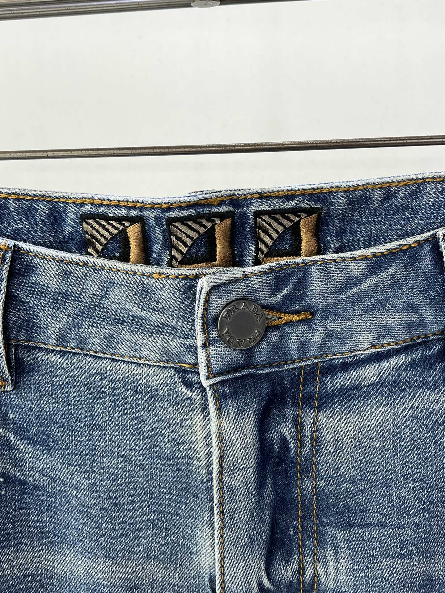 Джинсы Prada. Индивидуальная эластичная джинсовая ткань, классическое оригинальное украшение из кожи, идеальная маленькая прямая версия.