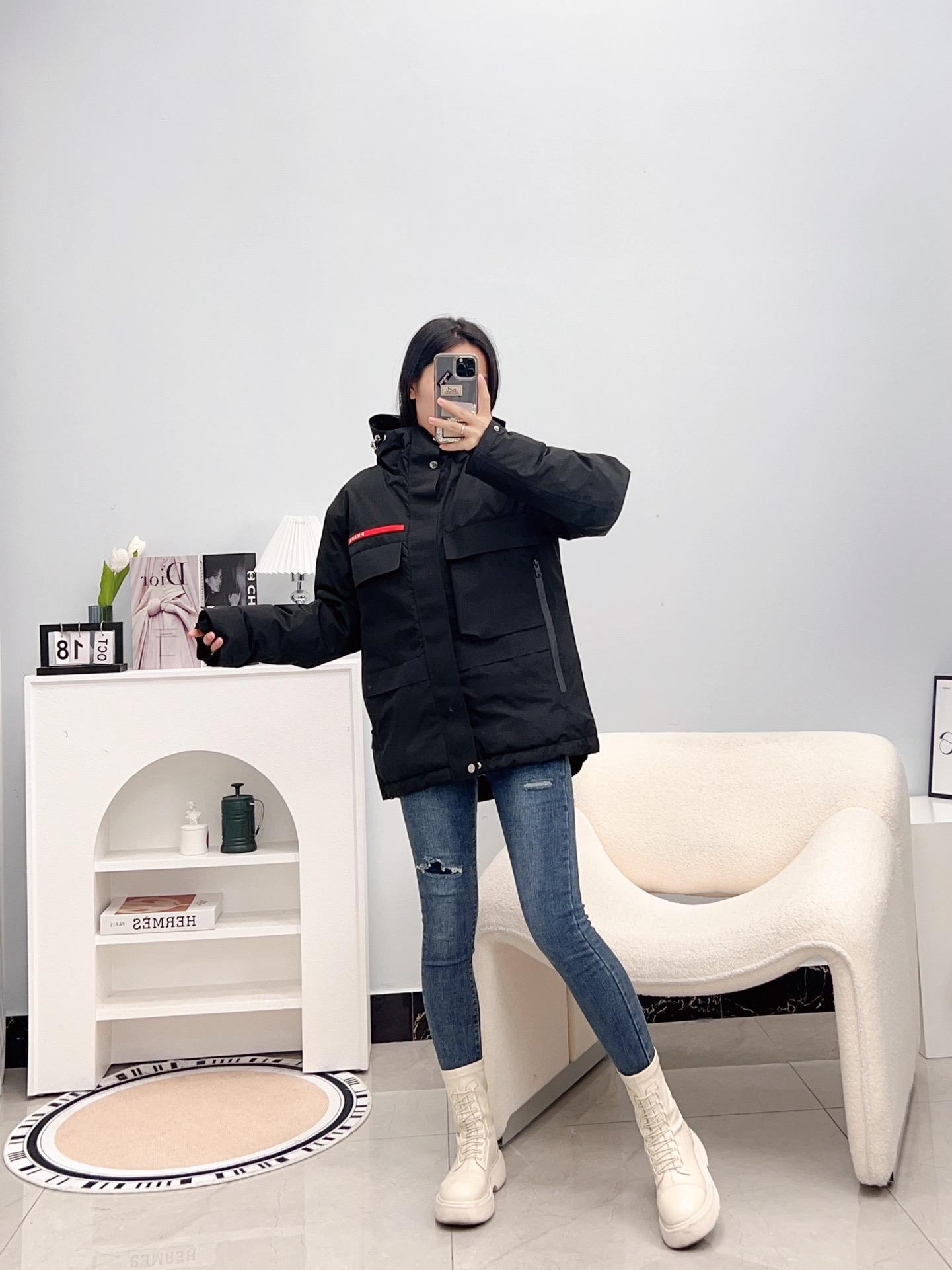 Съемный капюшон, пуховик на молнии с кнопками, классический дизайн красной ленты на груди, логотип со светоотражающей полосой на спине, очень привлекает внимание. Деловой и повседневный, спортивный и модный стиль для отдыха, подходящий для любого случая.