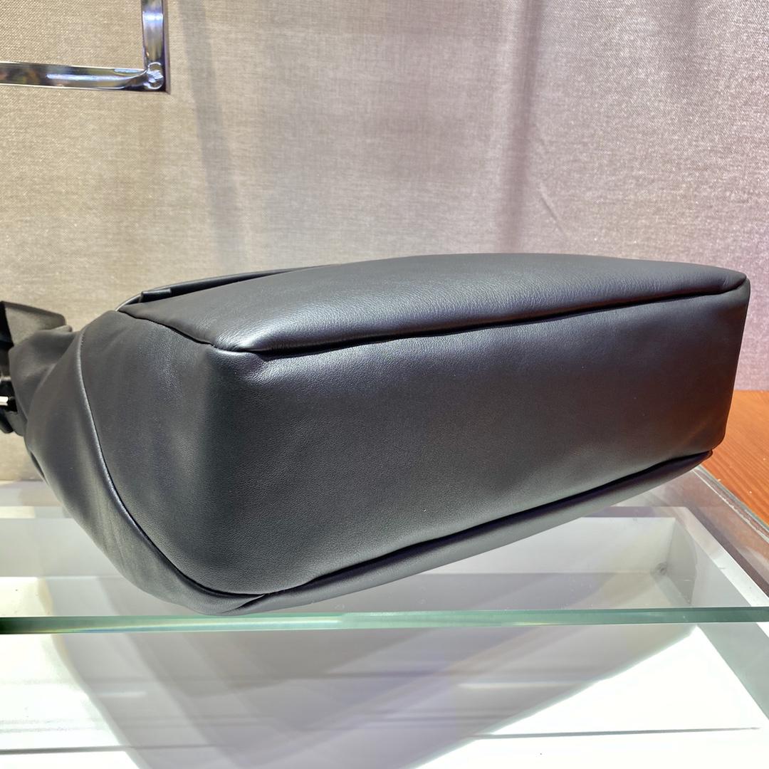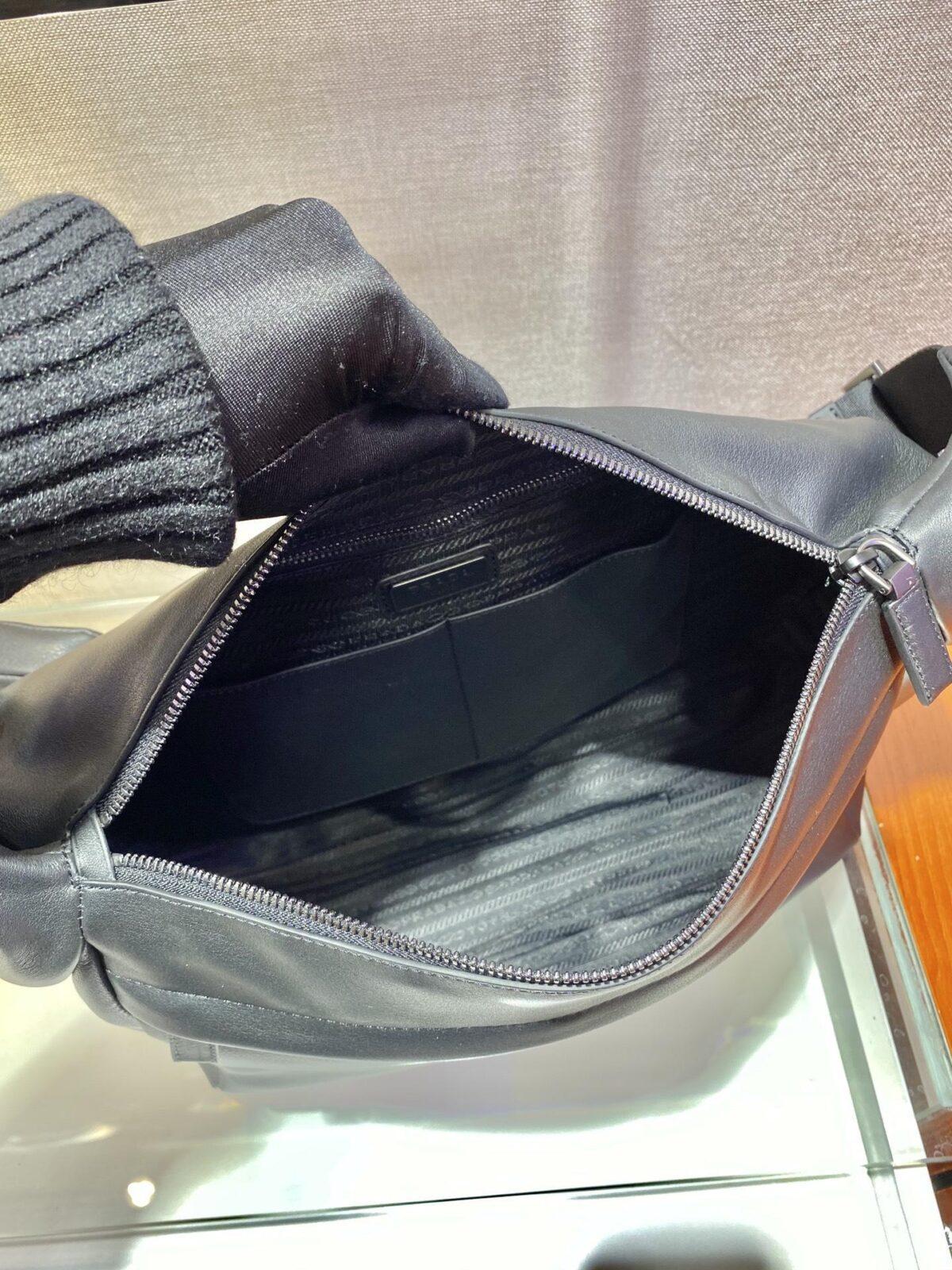 Регулируемый плетеный нейлоновый плечевой ремень со съемным мешочком, обычно используемым в коллекции семейства Prada, обновляет дизайн для дополнительной функциональности.