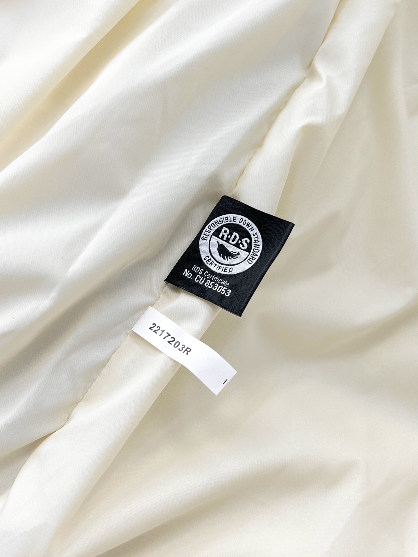 100% пух 80 национального стандарта, с лучшими теплоизоляционными характеристиками, легкий и не тяжелый, с хорошим восстановлением пуха после сжатия. Подкладка из 100% нейлона с двухслойной уплотнительной конструкцией для предотвращения скатывания бархата, ветрозащитная и непромокаемая ткань, а также регулируемый подол со встроенной пряжкой на шнурке для защиты от ветра и холода. 100% оригинальные молнии YKK, изготовленные по индивидуальному заказу, с четкой гравировкой и идеальной текстурой.