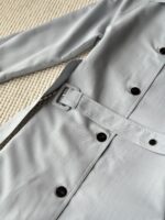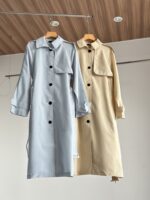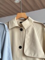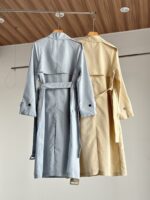 Классический воротник-стойка (в нижней части воротника есть кнопка, пряжка может быть ветрозащитным, теплым и холодным) однобортный дизайн, двусторонние карманы, небольшой дизайн падение плеча, манжеты из пряжки можно регулировать в зависимости от размера запястья, дизайн без подкладки, с регулируемым поясом, верхняя часть тела довольно стройная.