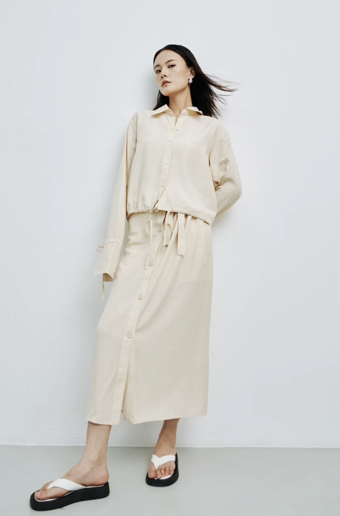 Рубашка с длинным рукавом Toteme Original Grade Linen Acetate + юбка Milk Almond.