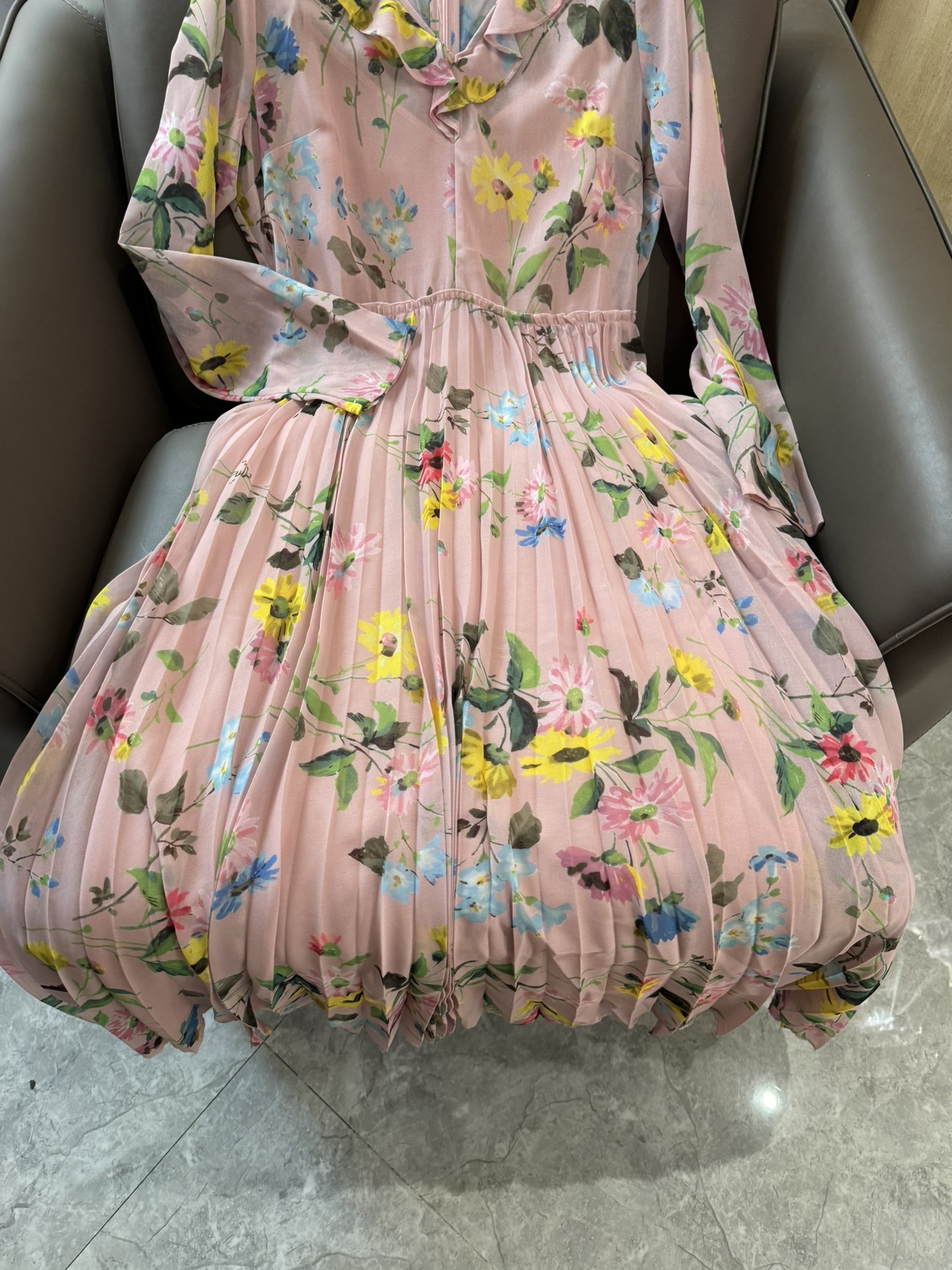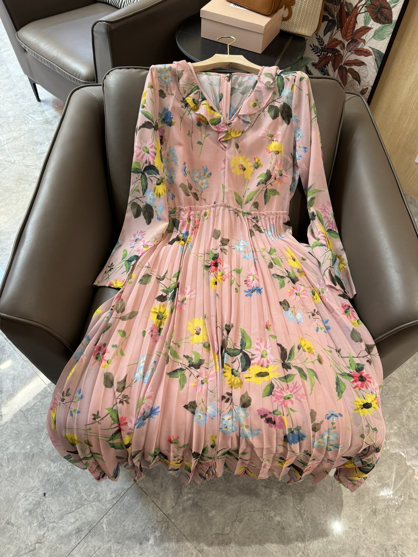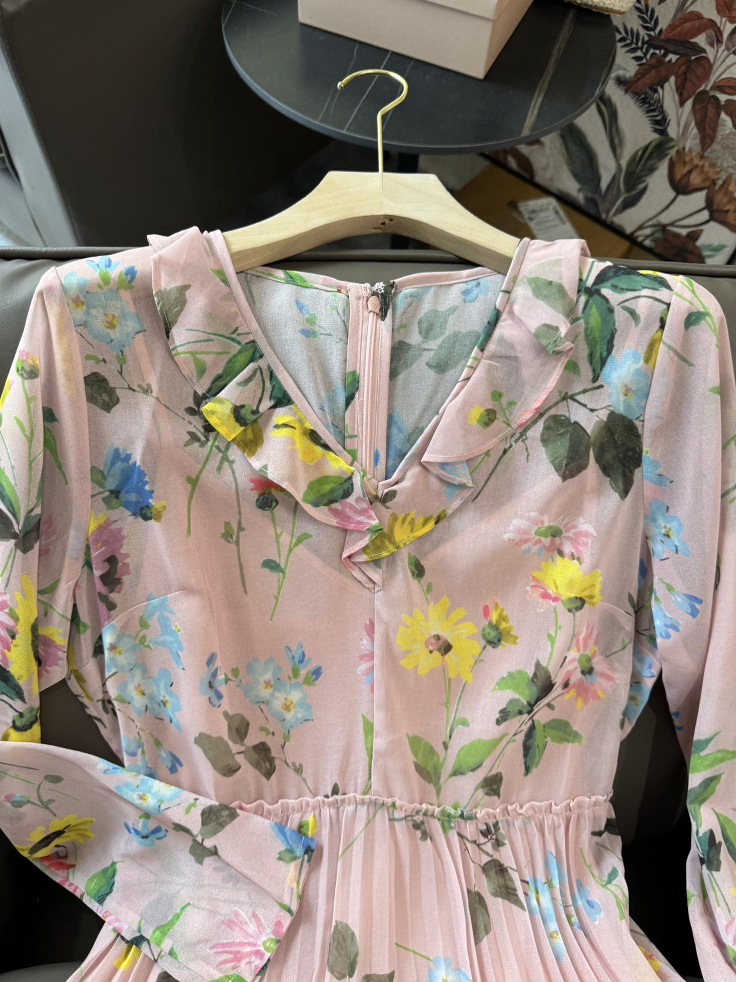 Платье Valentino. Платье с длинным рукавом и принтом, розовое.
