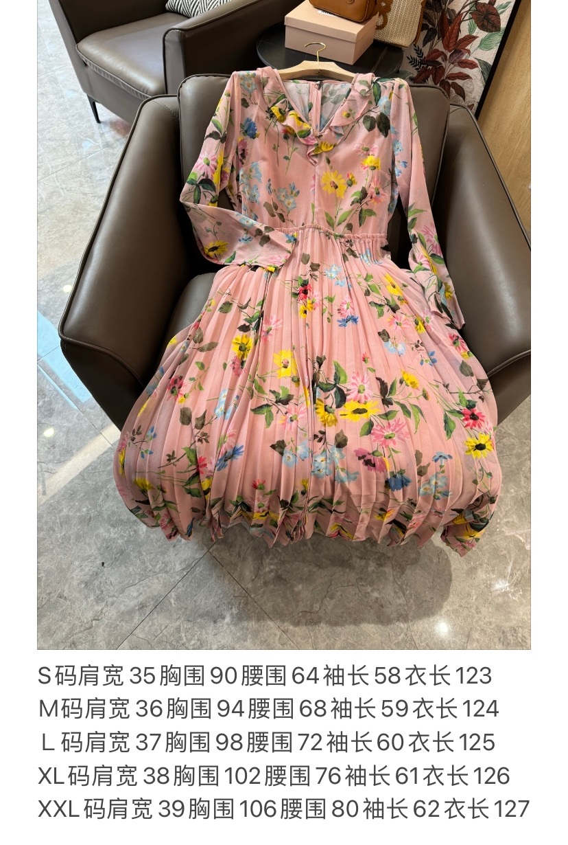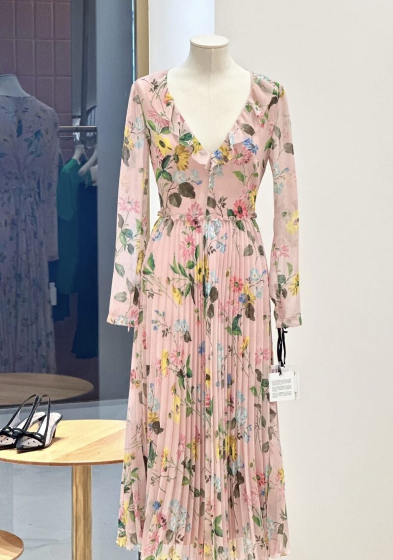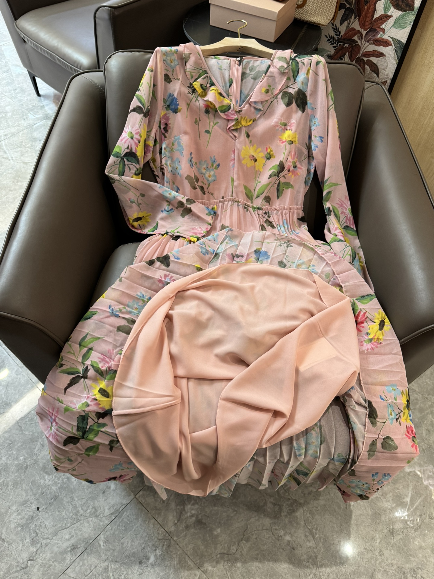 Платье Valentino. Платье с длинным рукавом и принтом, розовое.